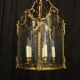 French Gilded Brass Triple Light Antique Lantern