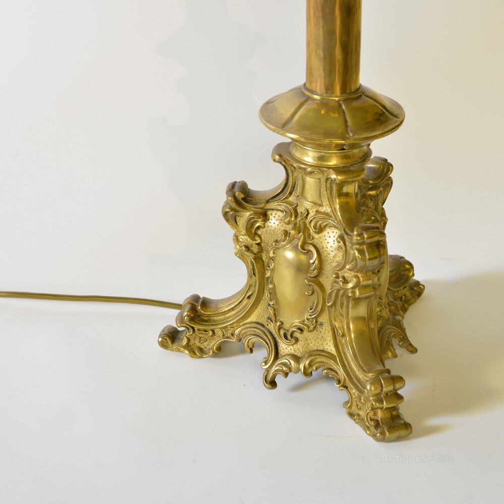 Vintage French Enamelled Tole and Brass Desk Lamp