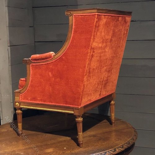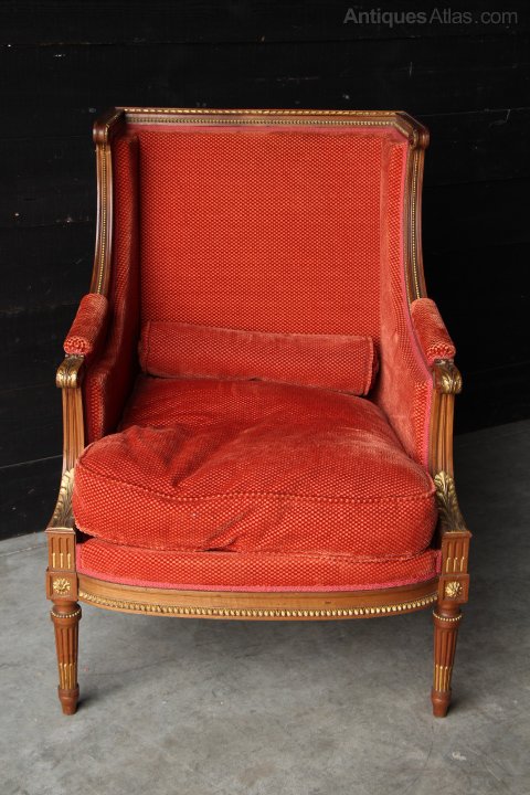 A wonderfully comfortable French Bergere Arm Chair, made from Solid Walnut with gilded highlighted decoration. The frame is in good order, strong and sturdy. The upholstery is in good condition. This stylish Arm chair is in excellent condition for the home.
