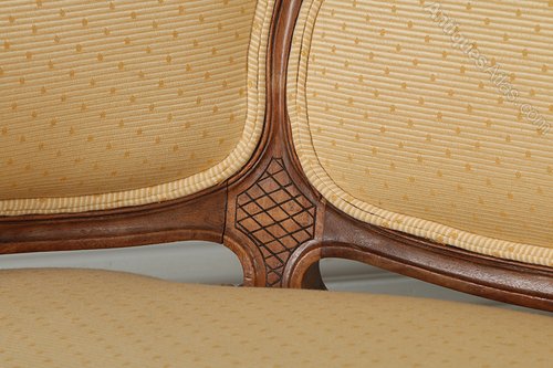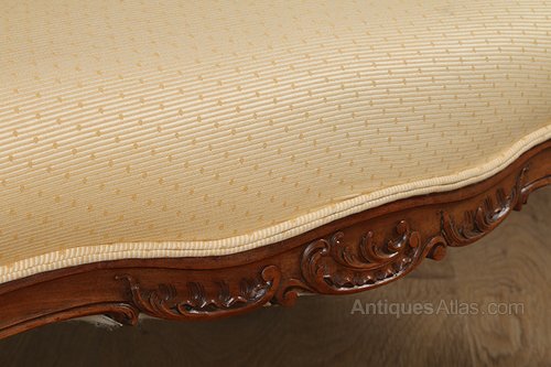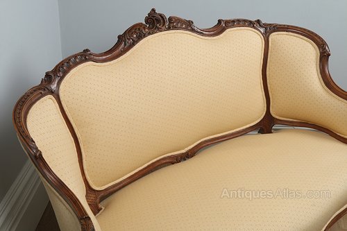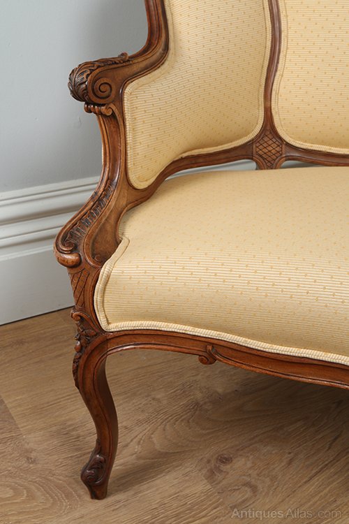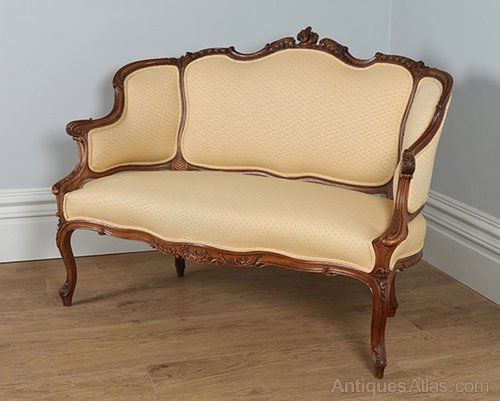 Condition This couch is in excellent condition. It has been freshly upholstered therefore the upholstery is in excellent condition (clean and no signs of wear, tear or damage). The carved frame and arms are also in excellent condition with no splits or lose joints. Furthermore, all carving is complete and not damaged. The backs and arms are solid. This item is solid in joint, does not wobble and is ready to use.