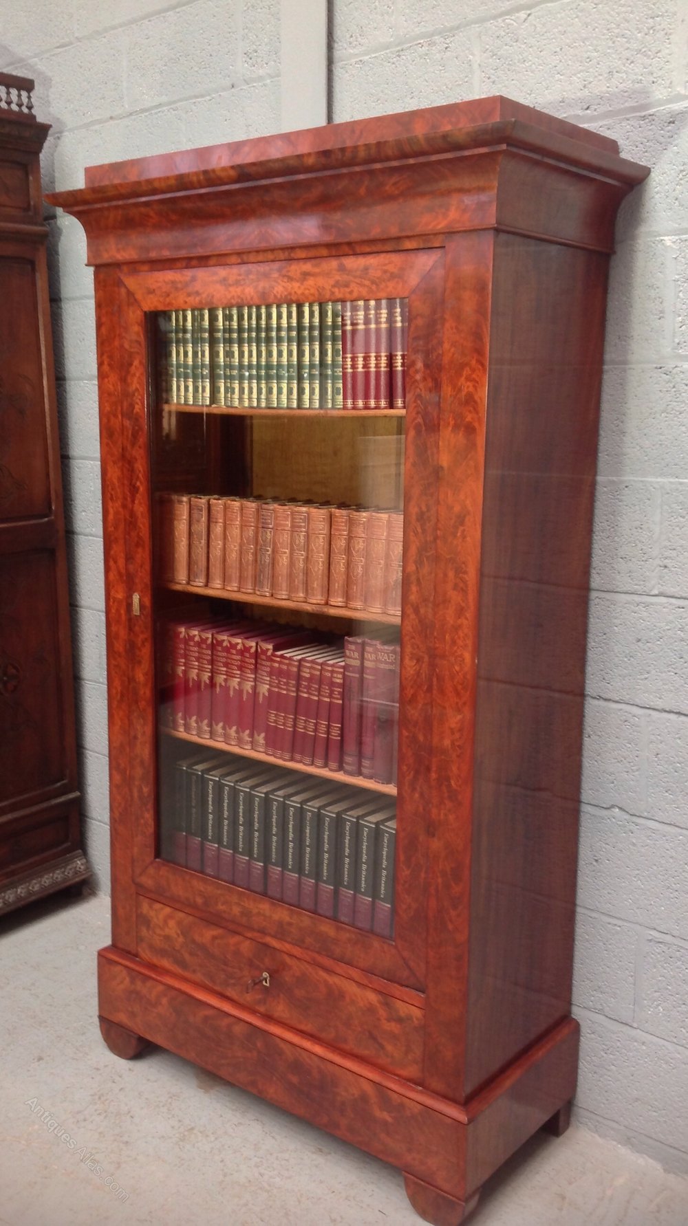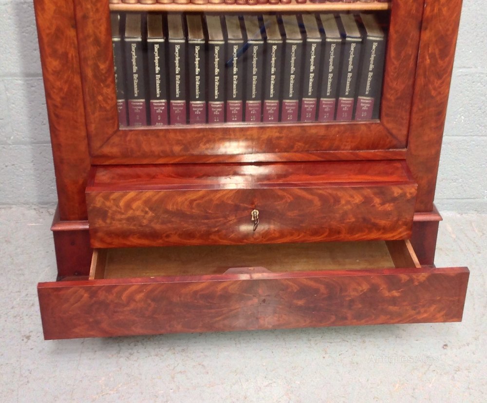 The bookcase has wonderful flame mahogany veneers.