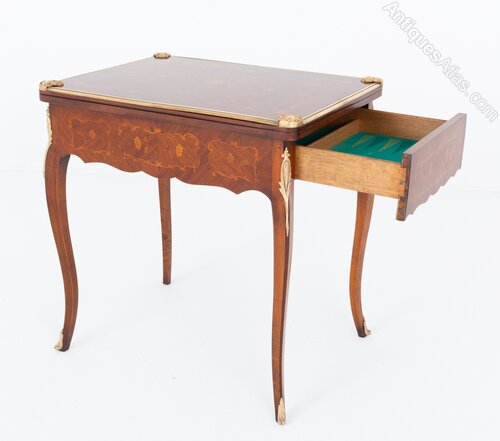 The Table Opens and Swivels to Reveal a Baize Playing Surface.