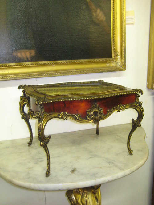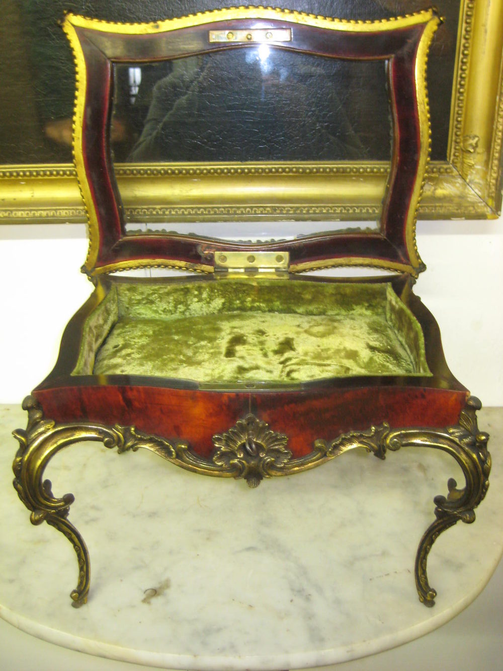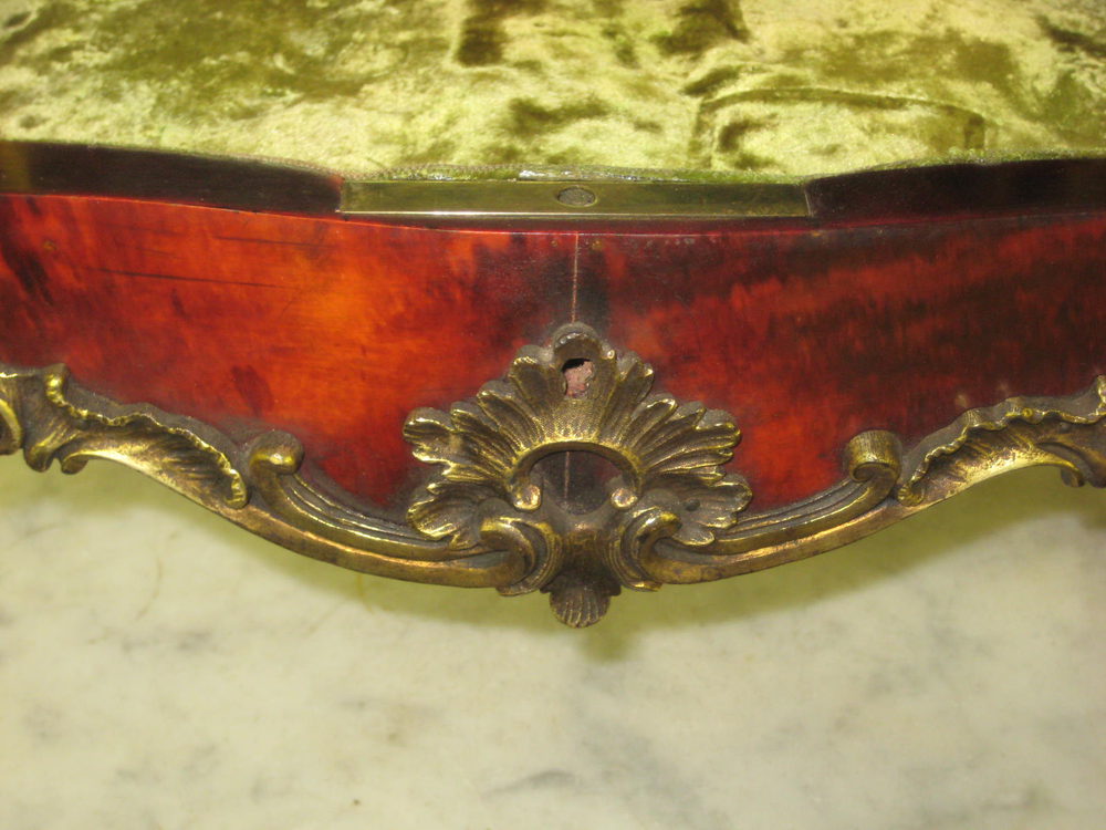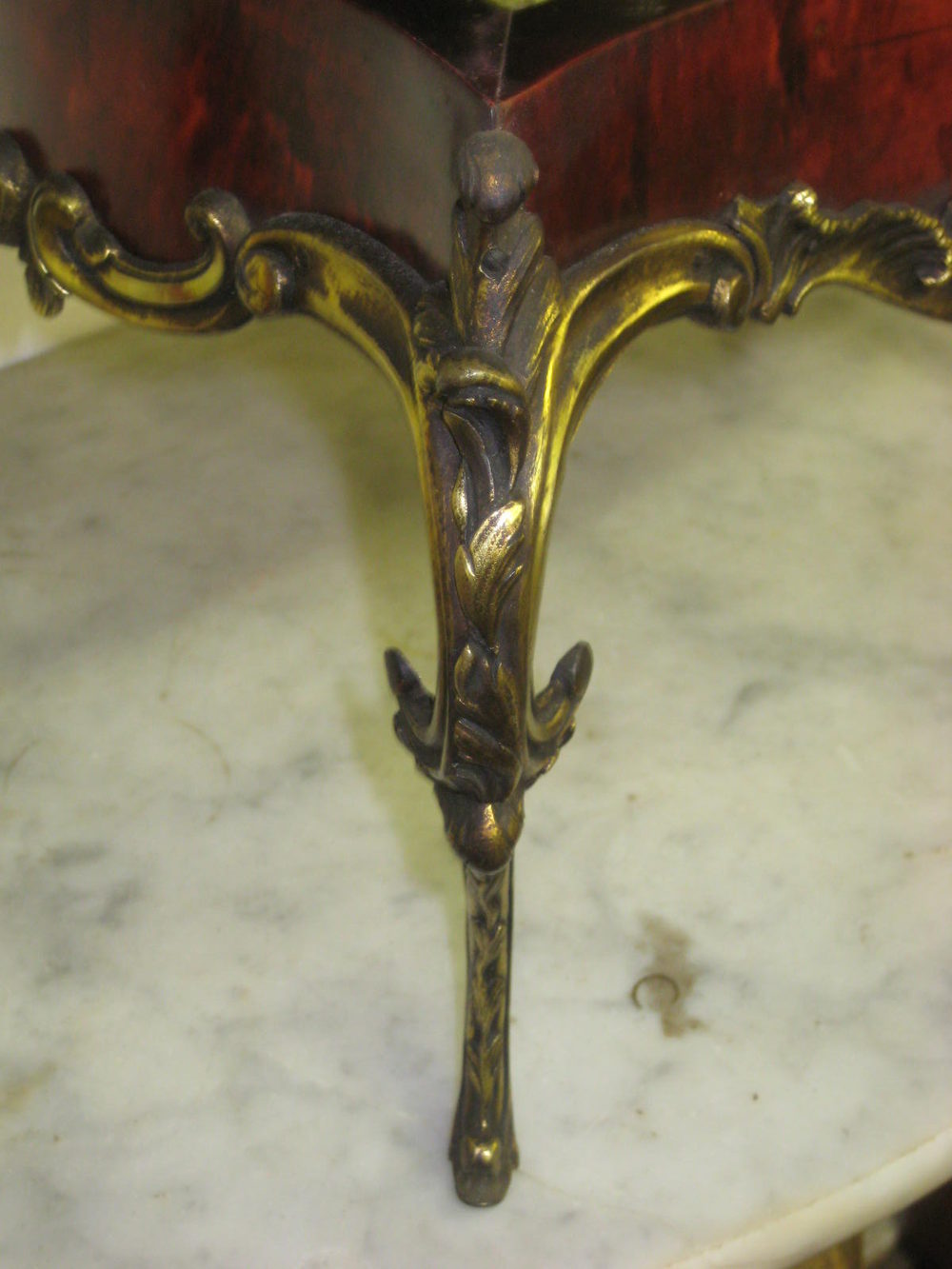 Circa 1850, French miniature tortoiseshell bijouterie table with ormolu mounts.