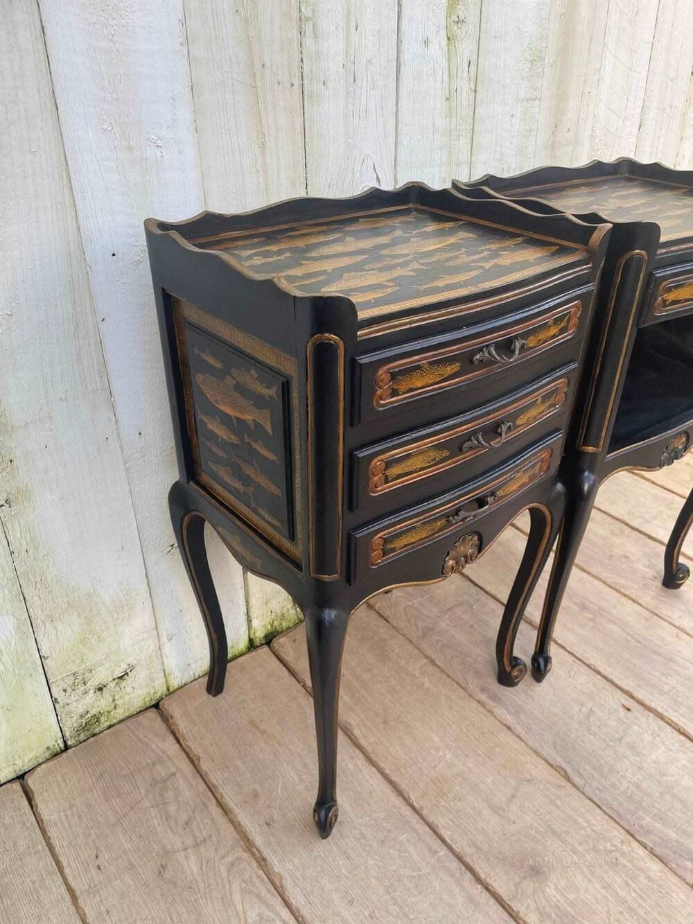 Pair Mahogany Inlaid Bedside Lamp Tables
