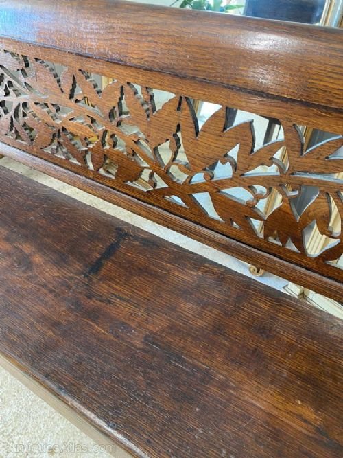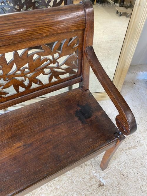 A nice French Oak Dining or Hall Bench. Nice pierced carved back panel and original colour and patina.