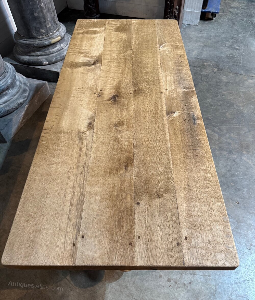 Large French Bleached Oak Farmhouse Dining Table