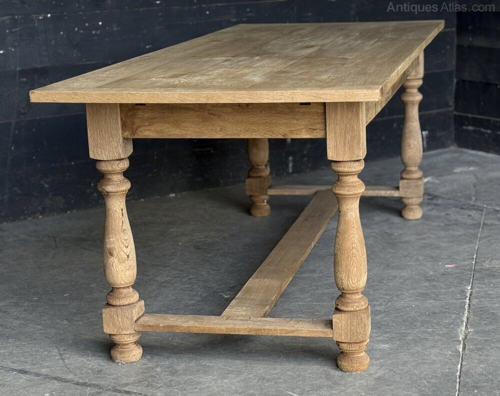 French Bleached Oak Trestle Farmhouse Dining Table