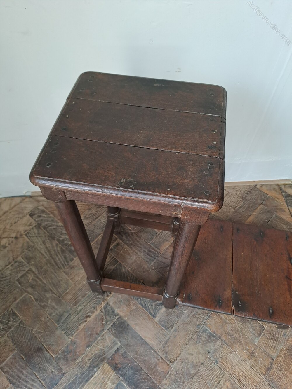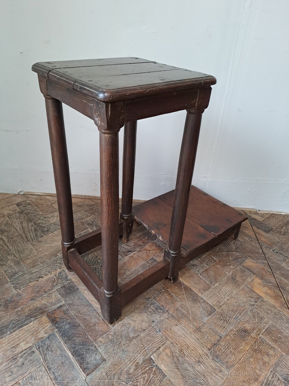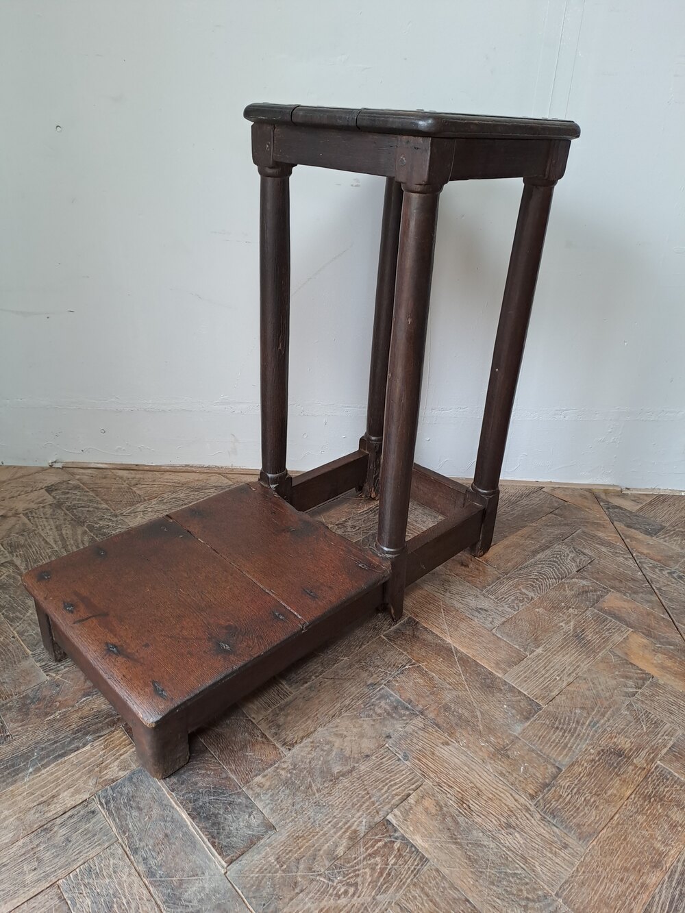 The original kneeling platform remains intact, showing honest wear consistent with age and use. The top has softly rounded edges from centuries of handling, and the piece is sturdy and well-balanced.