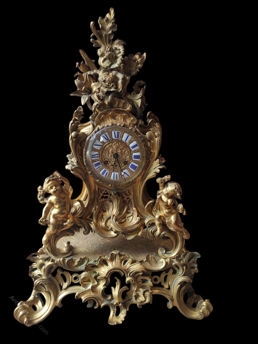Intricate floral decoration throughout with putti figures.