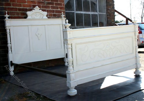 French Painted Carved King Size Double Bed 1900