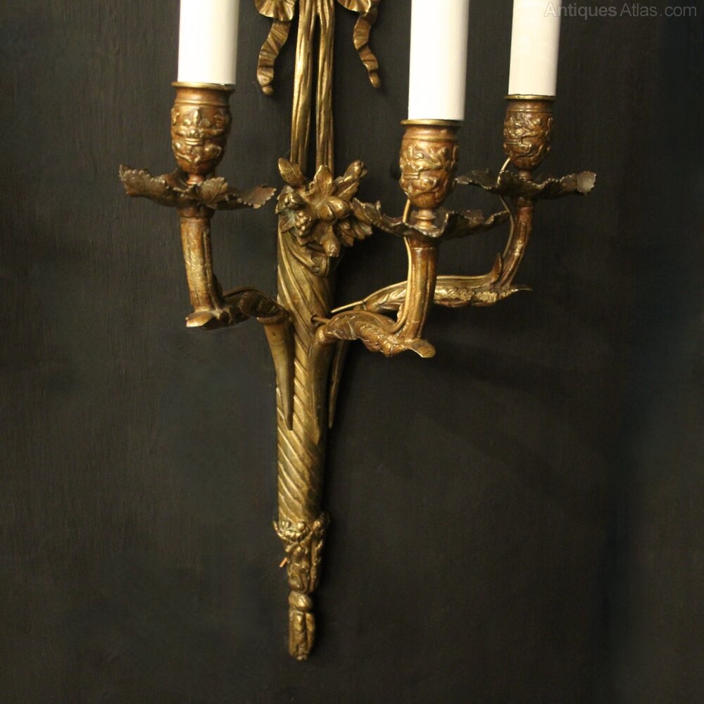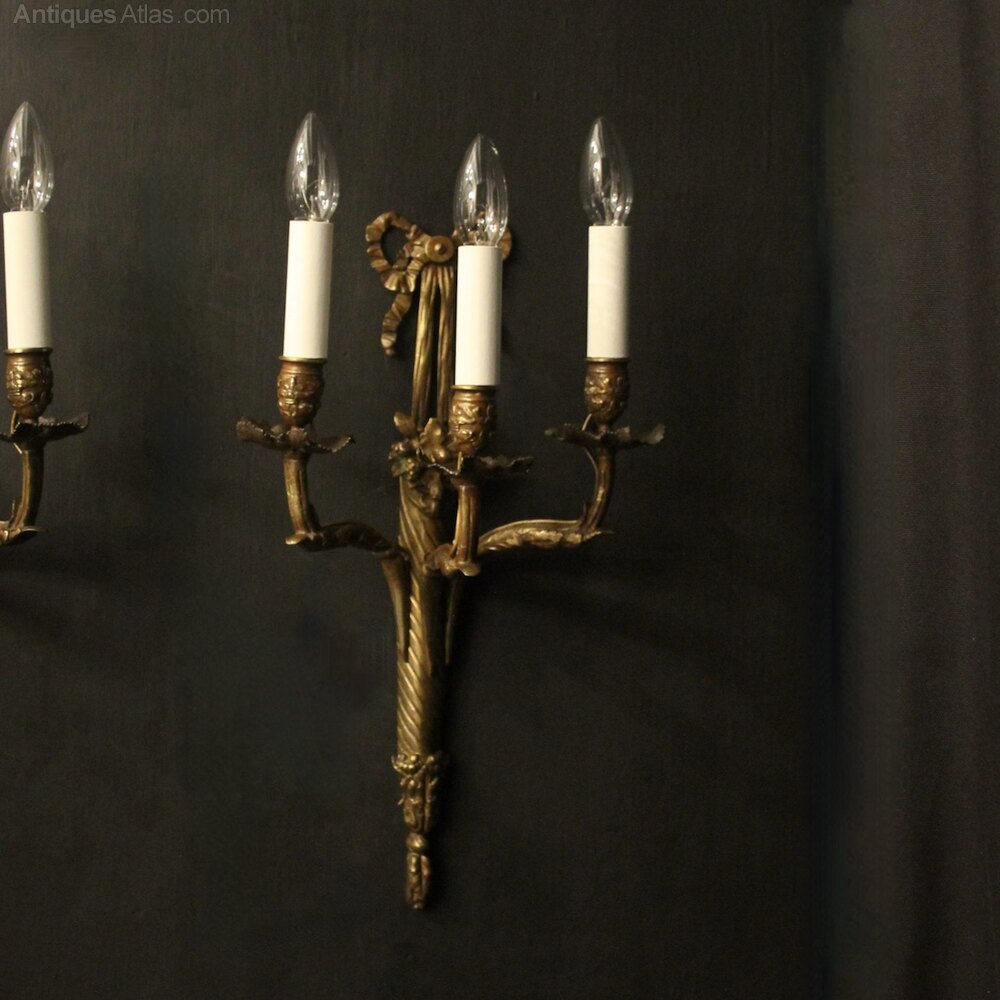 French Set Of 4 Gilded Triple Arm Wall Lights