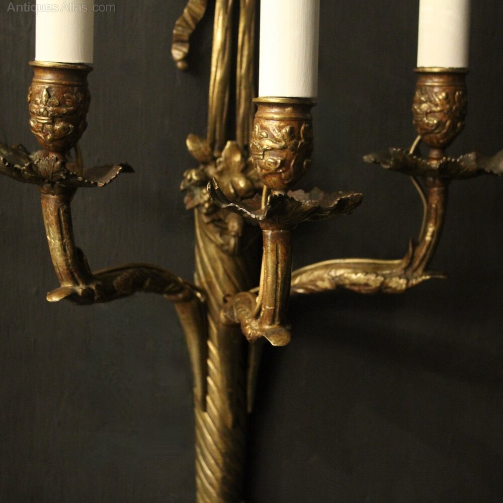 Pair 19th C Large Gilt Bronze French Candle Sconces