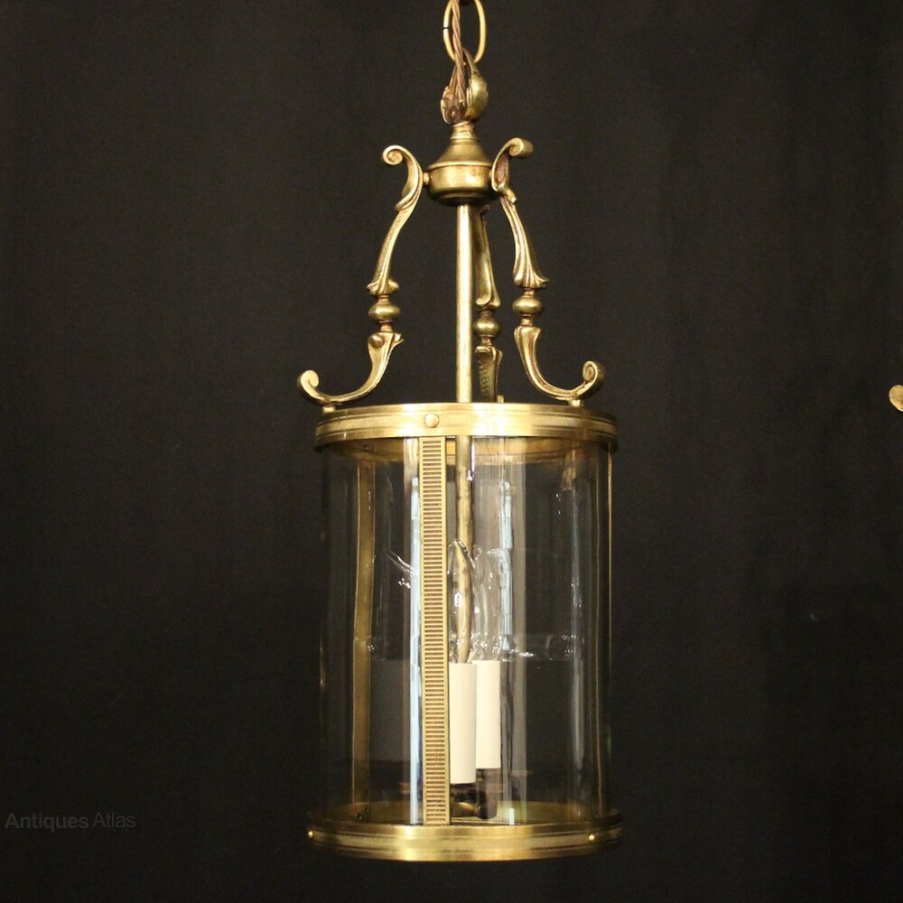 Pair of Art Deco Style Brass & Glass Hall Lanterns