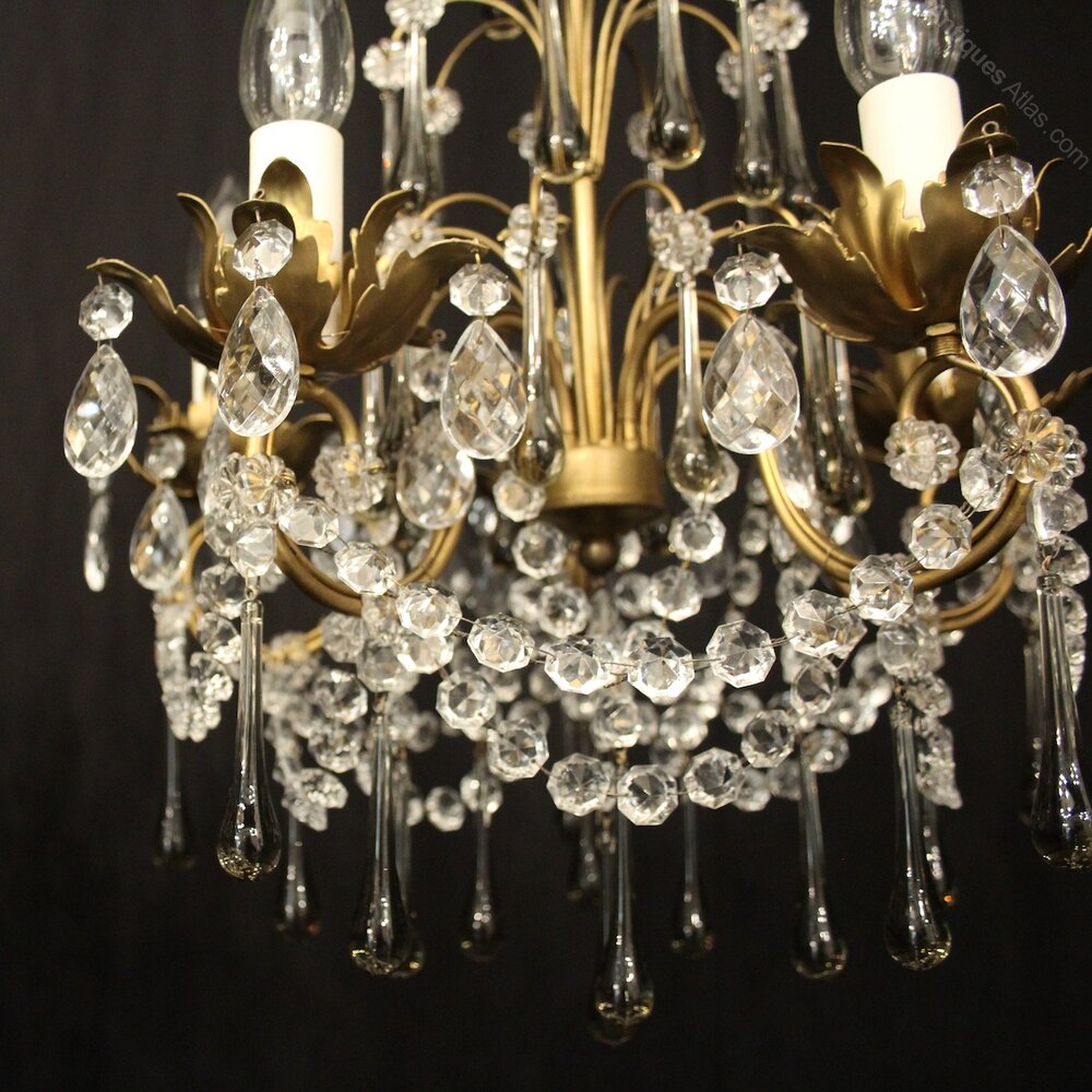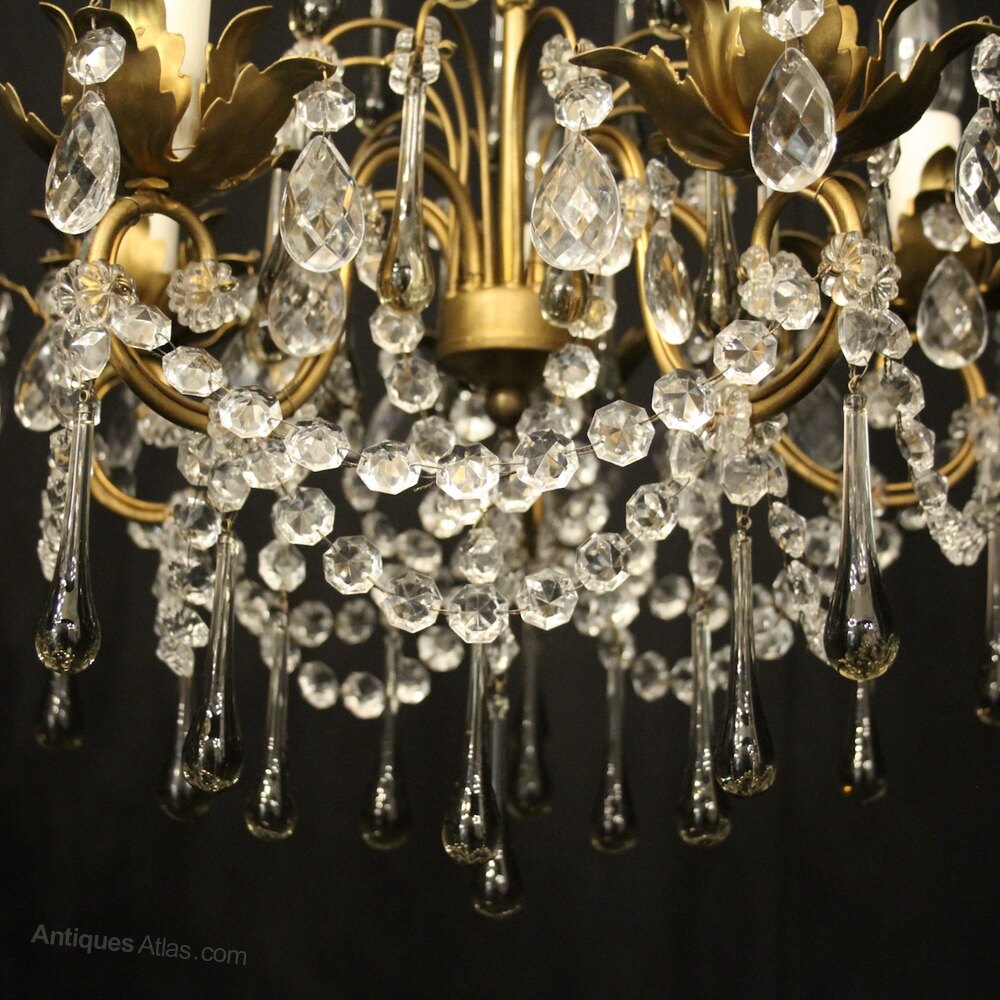 French Gilded 12 Light Crystal Chandelier