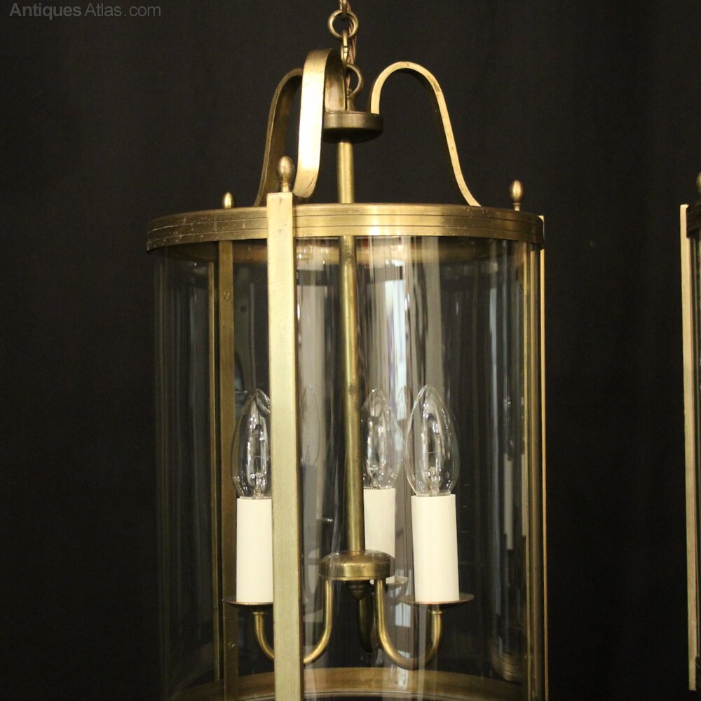 Pair 1920's Solid Brass Hanging Ceiling Lanterns