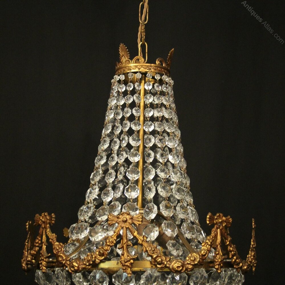 Brass And Hand-cut Crystal, Four-tier Chandelier
