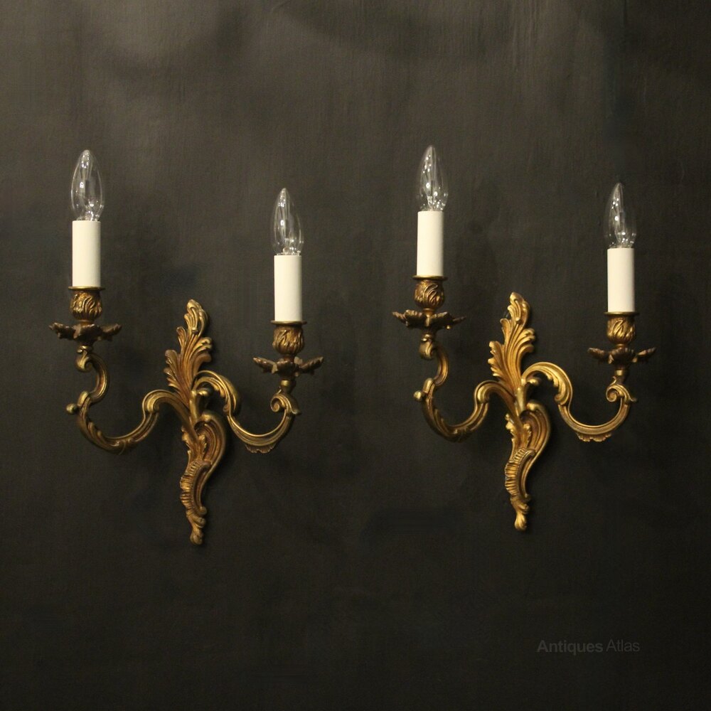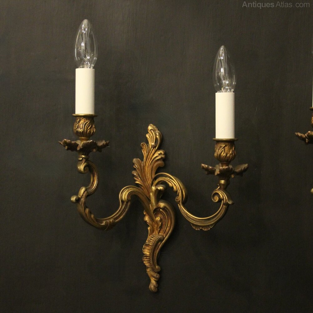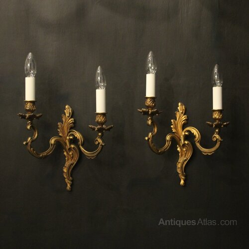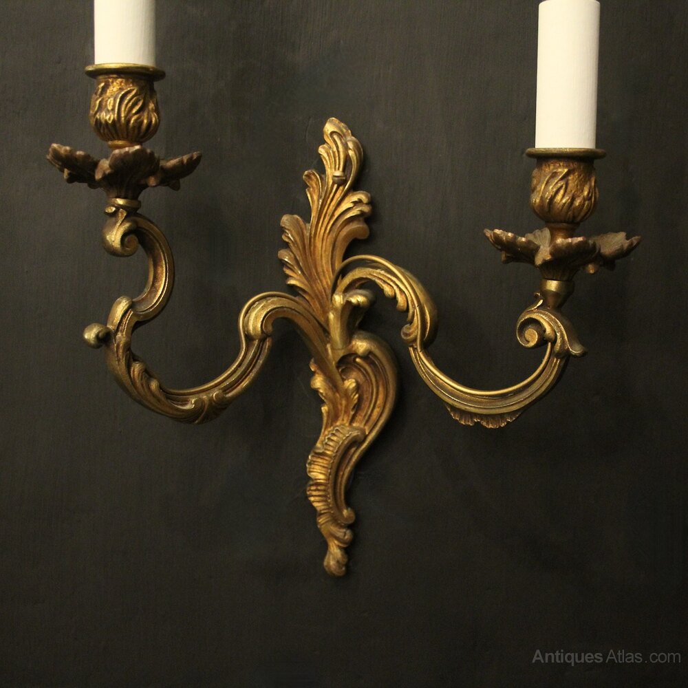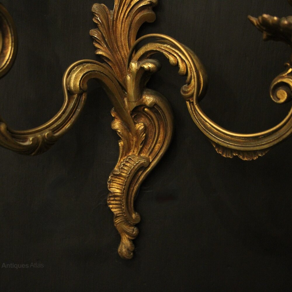 French Pair Of Gilded Twin Arm Wall Lights