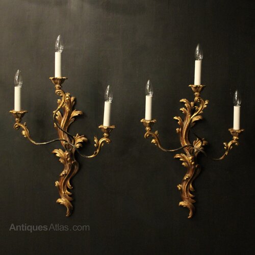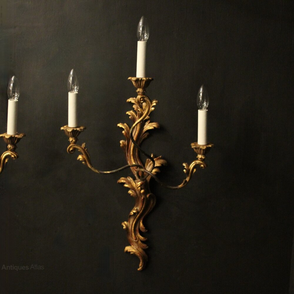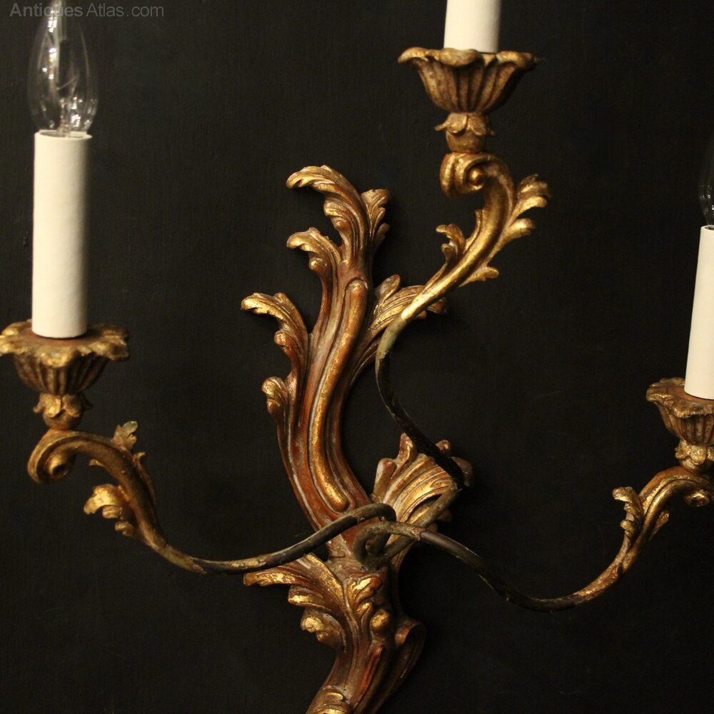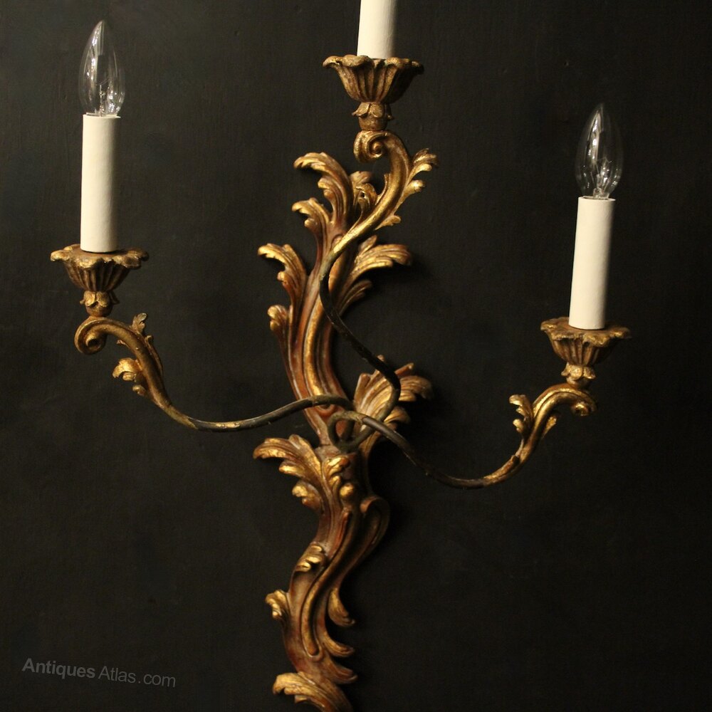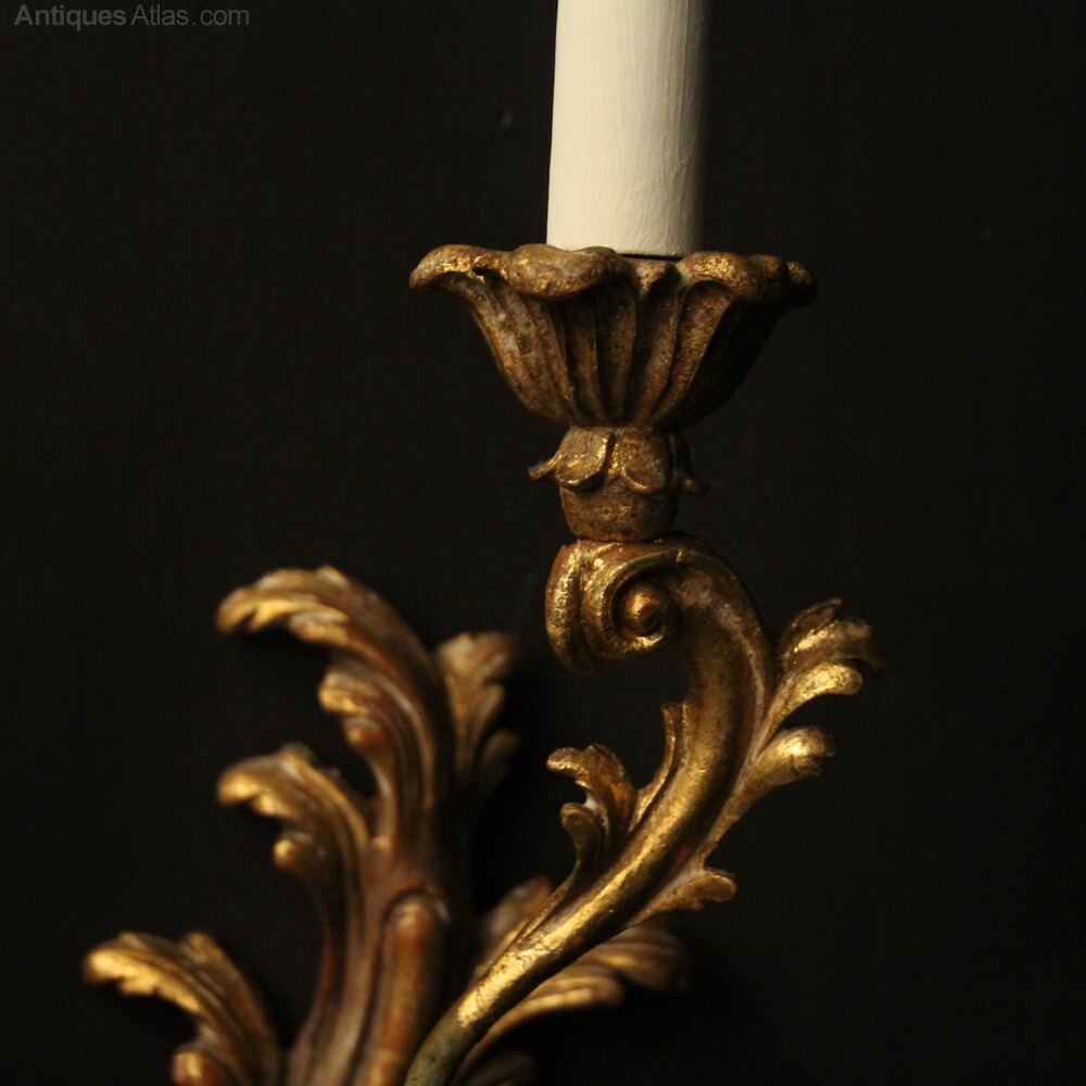 Antique Italian Gilt Toleware & Giltwood Wall Lights