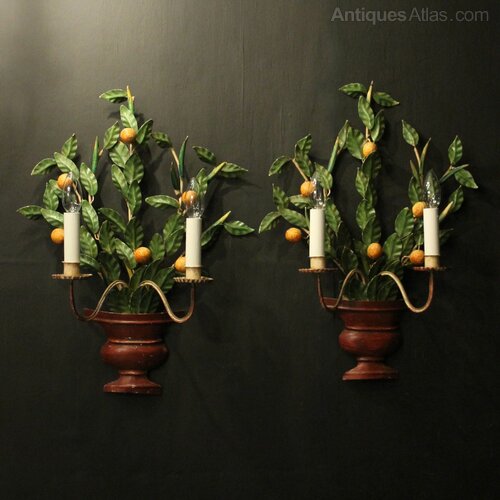 French Pair Of Toleware Floral Wall Lights