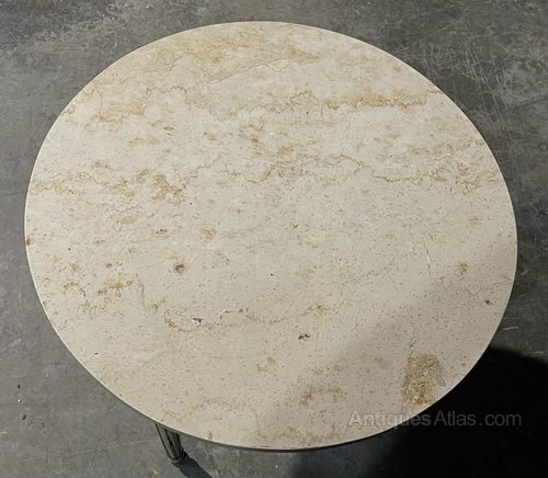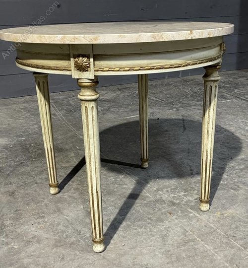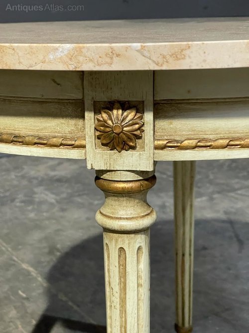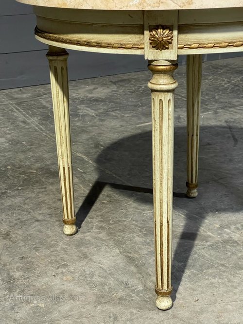 A lovely French Round Coffee Table, having marble top and original paint finish.