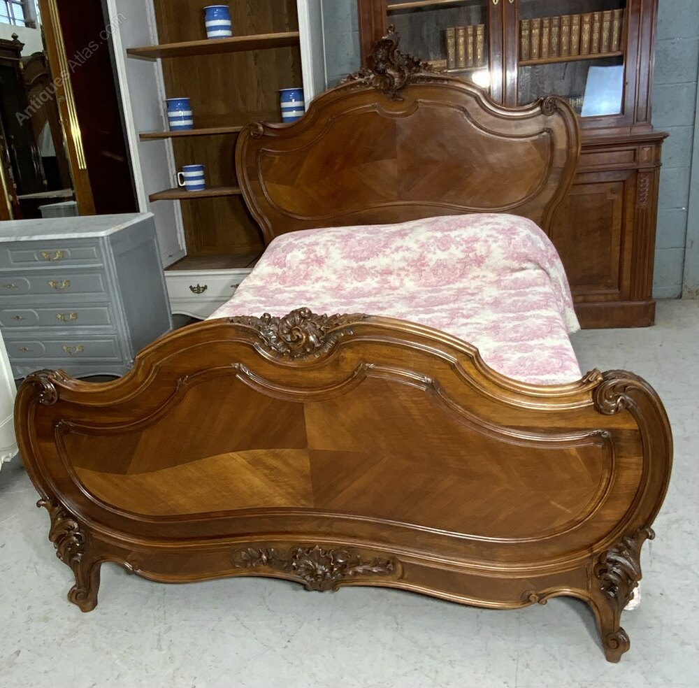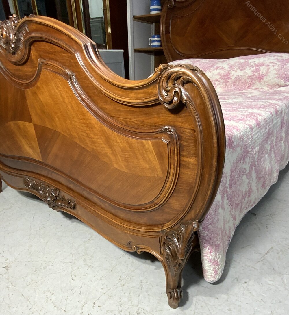 The headboard and footboard are ornately carved and have lovely shaped frames.