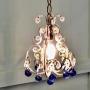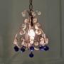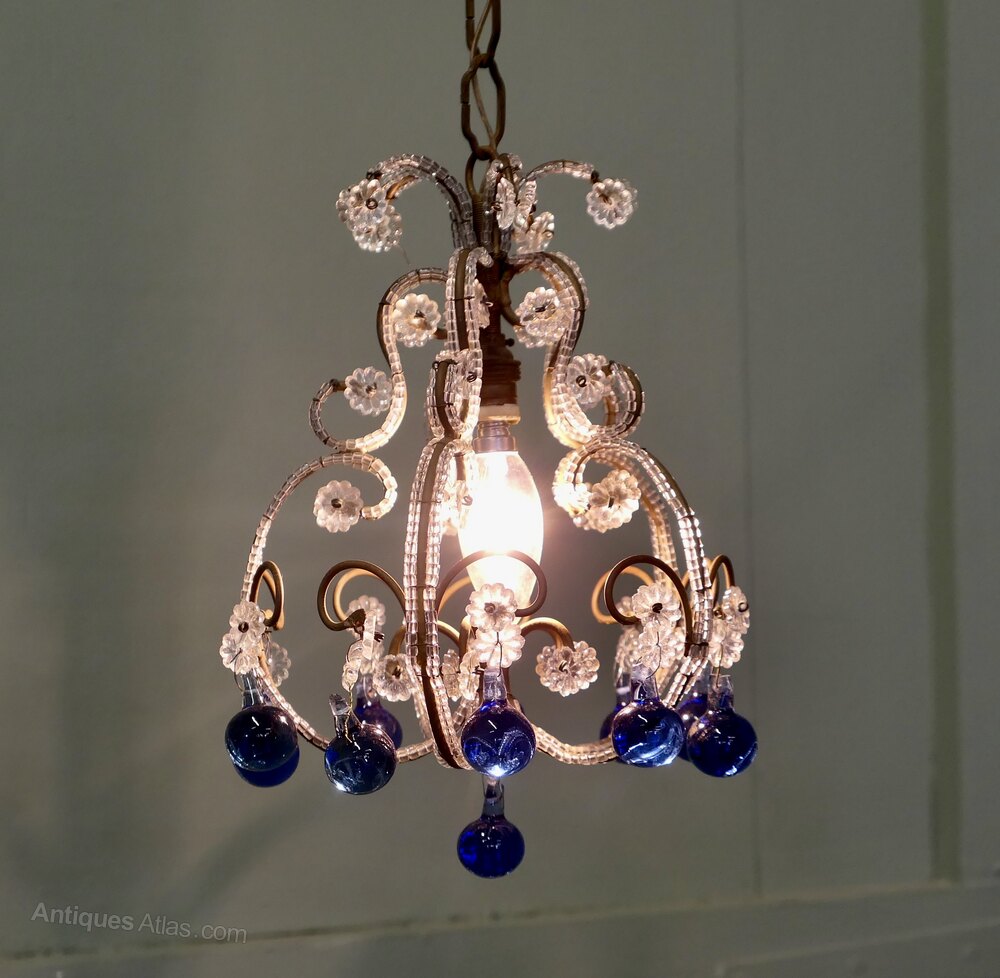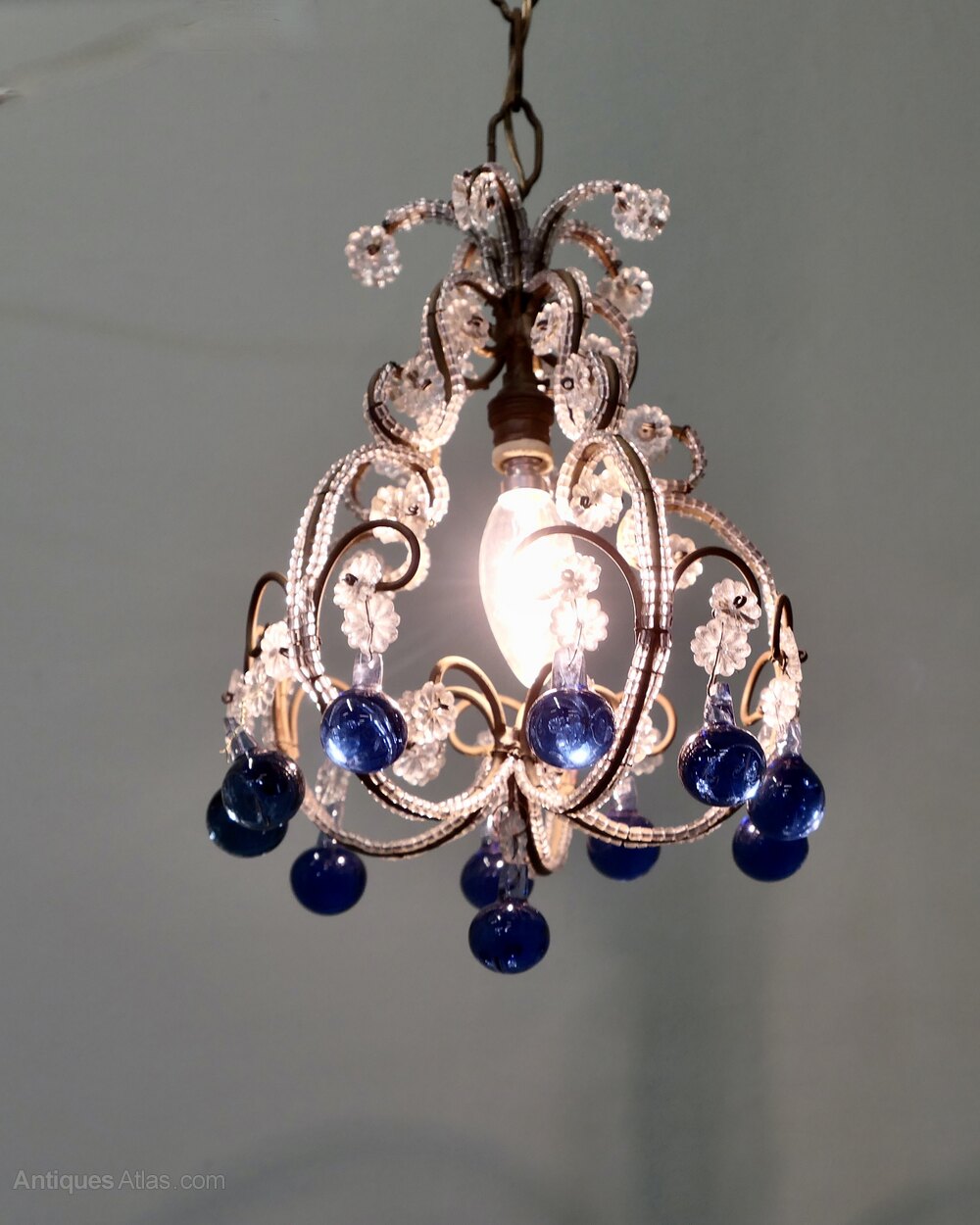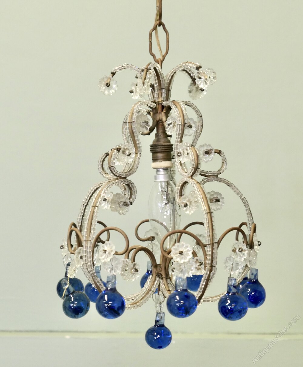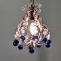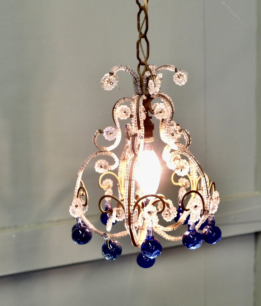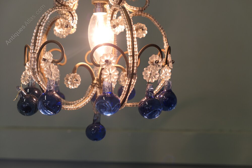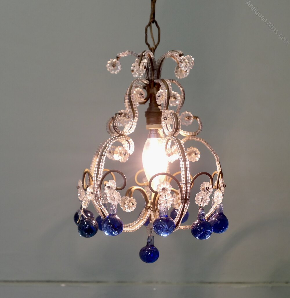 A Charming Little French Light fitting, the age darkened twisted brass frame is set with clear coloured beads and flowers all around with stunning cobalt beads hanging from the bottom part