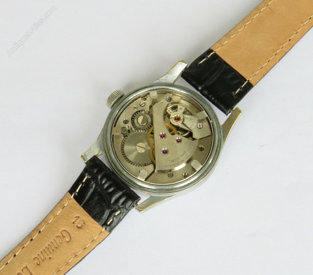 The watch has a Swiss 15-jewel hand-winding movement which is working nicely.