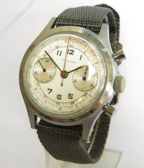 The dial is signed Bancor, a name registered by Shifter & Boriser of New York in 1944. We have seen several examples of Bancor / Britix collaborations over the years. It would appear that Shifter & Boriser imported the Britix watch, labelled it with their own brand name of Bancor for onward retail. This would fall in line with their 1940s expansion into the US.