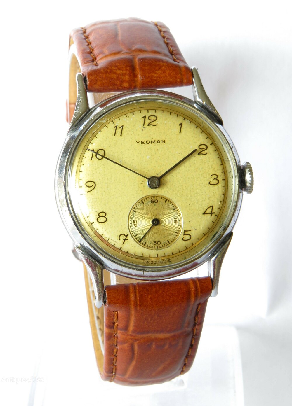 The dial is signed with the name Yeoman, a brand name registered by Adie Brothers of Birmingham in 1929.