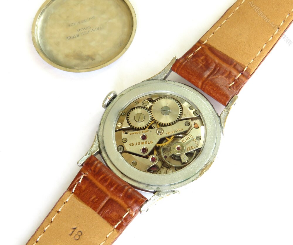 The watch has a Swiss 15-jewel hand-winding movement which is working nicely.
