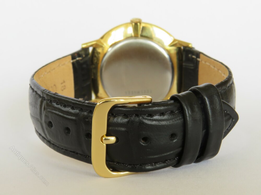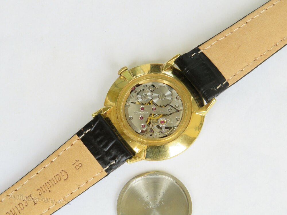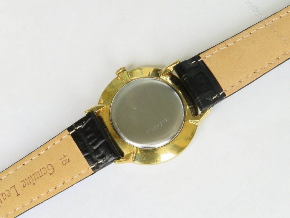 The watch measures 34mm diameter excluding the original signed winding crown and the lugs. The case is gold plated while the case back is stainless steel. The case is in good condition.