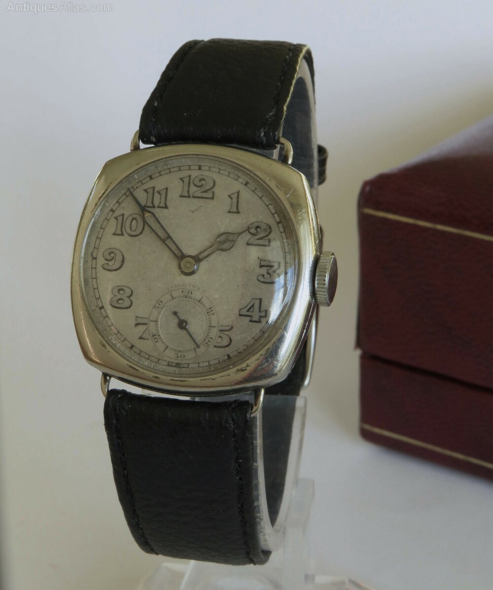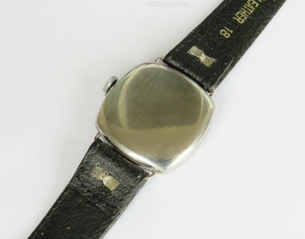 The watch measures 31mm wide excluding the winding crown, and 31mm high excluding the wire lugs. The case is Staybrite, an alloy with a very high chromium content. The case is in good condition for a 1930s piece, just surface marking but not too serious at all.