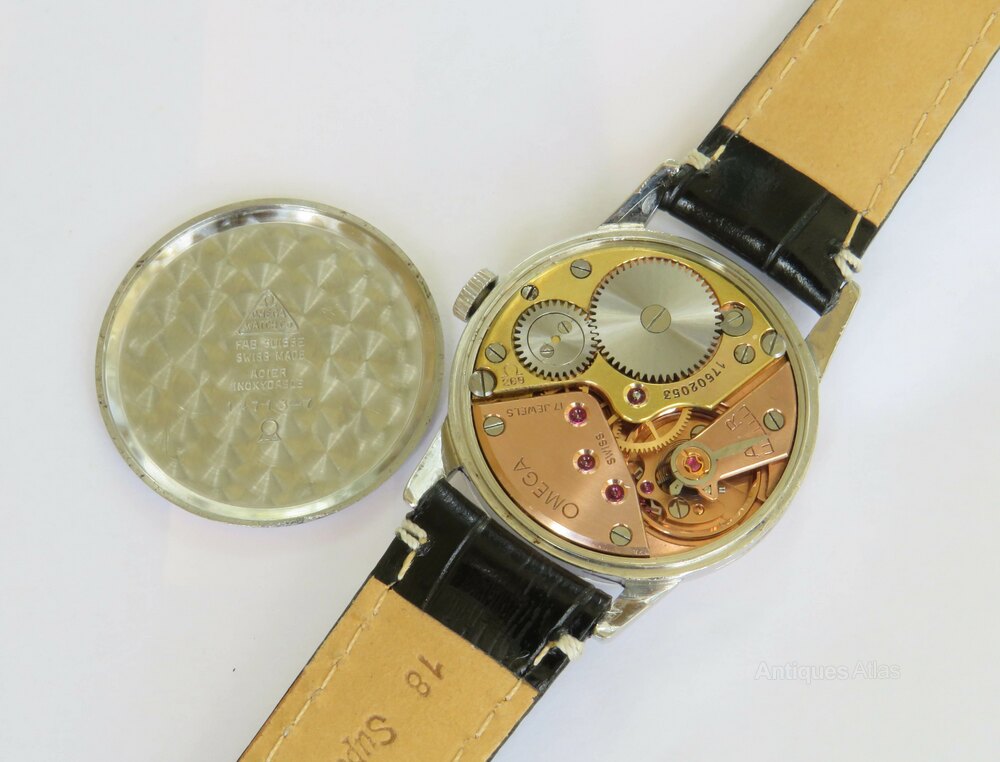 The watch measures 33mm diameter excluding the Omega winding crown and lugs. The case is stainless steel and it is in lovely condition, just a small slight indentation to the back. The inside of the case back has the Omega logo and the reference 14713-7 which is correct for the calibre 268.