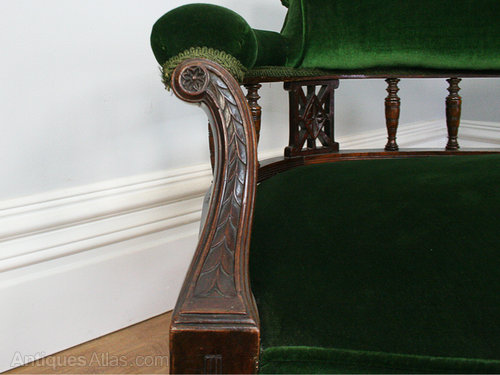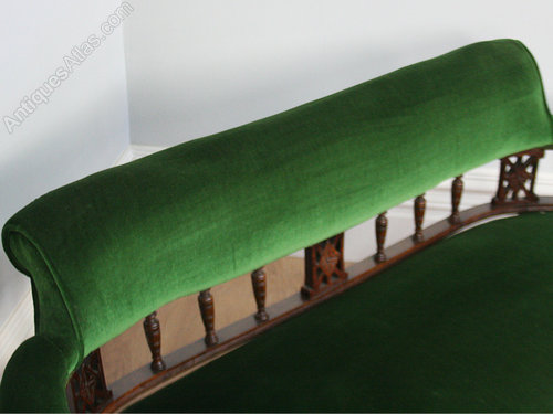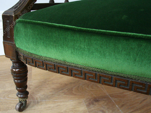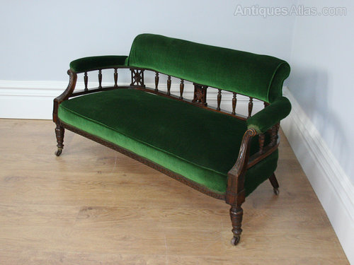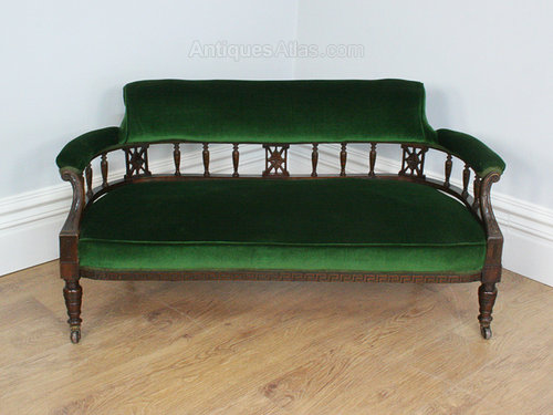 Antique Geometric Edwardian Walnut Rail Back Couch (Circa 1900)
