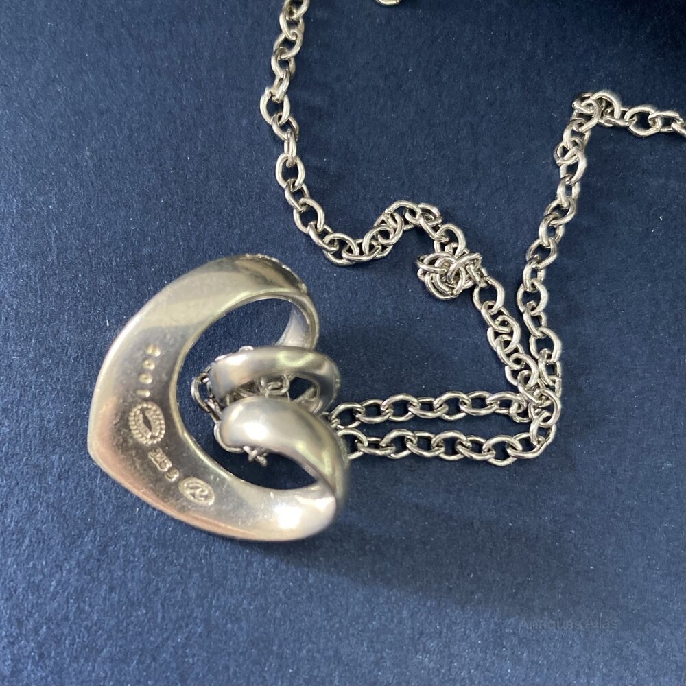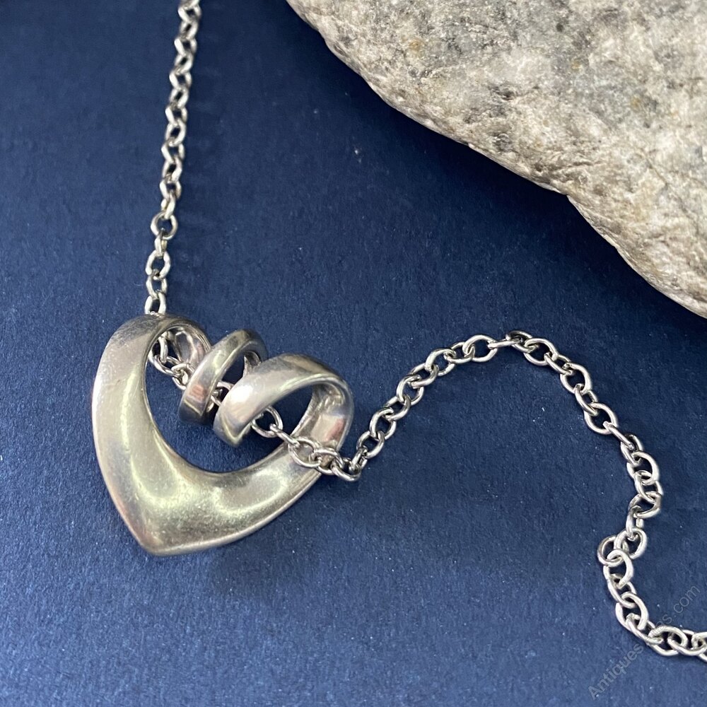 Georg Jensen Danish silver heart pendant designed by Regitze Overgaard. This charming necklace is part of the Artist of the Year collection and manufactured in 2001. In very good vintage condition.