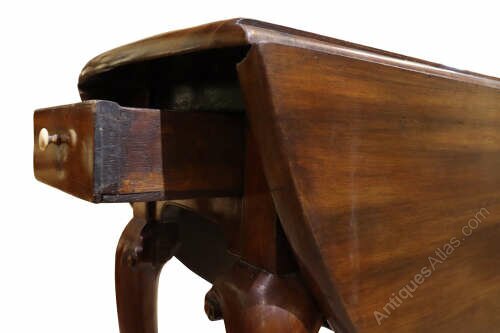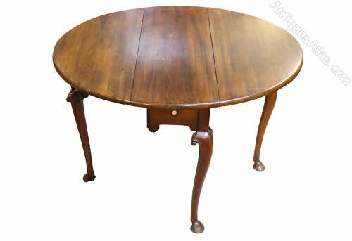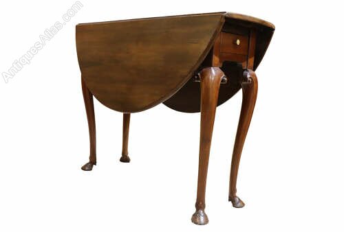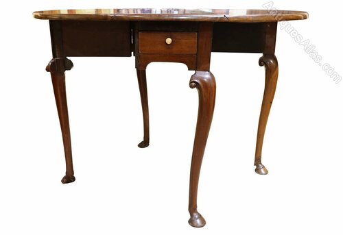 An unusual and elegant George II Cuban mahogany drop-leaf table, dating to around 1750. The table features a single original drawer with a period knob, and stands on slender cabriole legs that terminate in delicately carved hoof feet – a refined and rare detail.