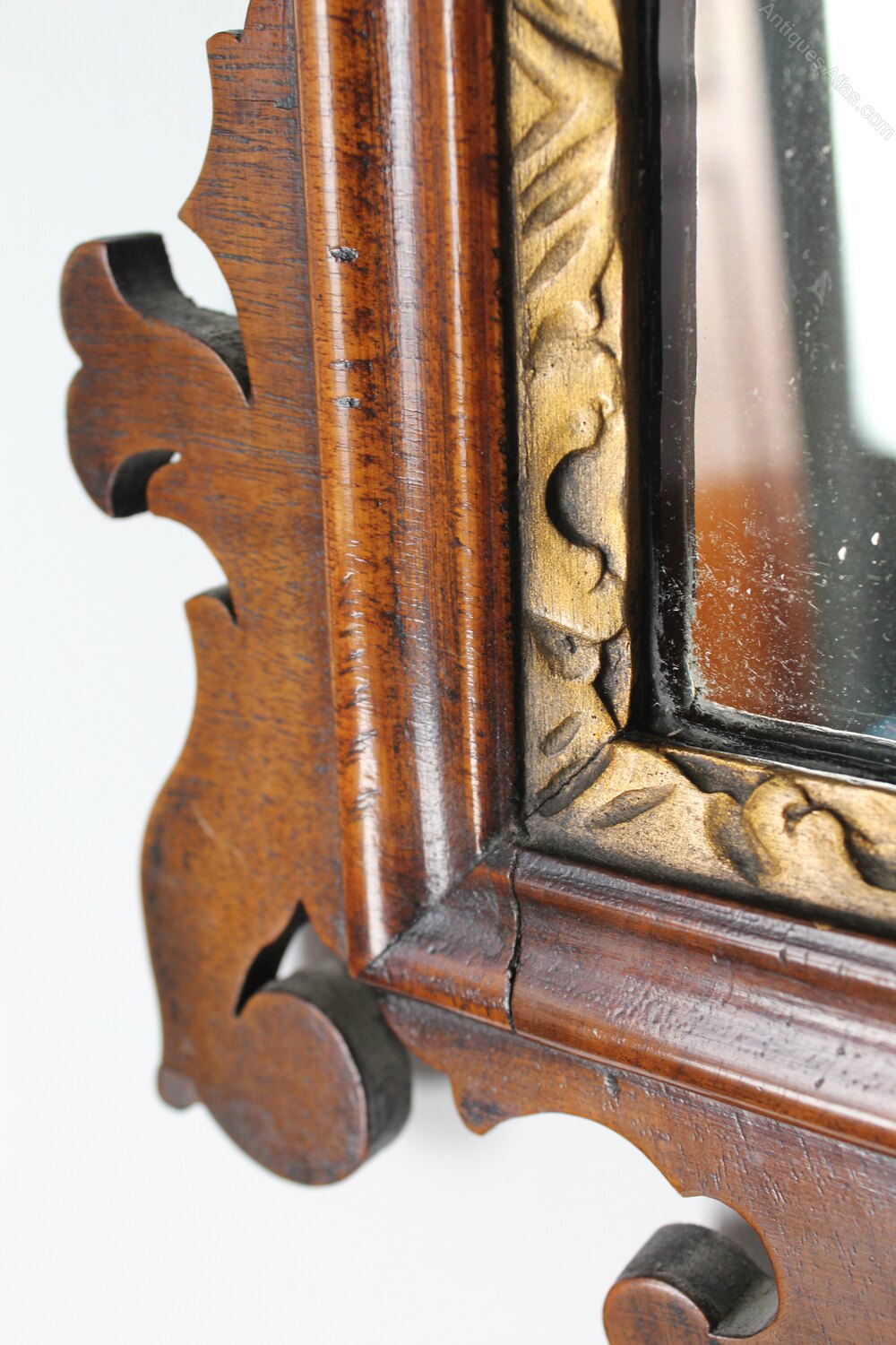 Good colour and patina. Later mirror plate. General marks and scuffs commensurate with age. Some typical old repairs to the delicate fretwork frame.