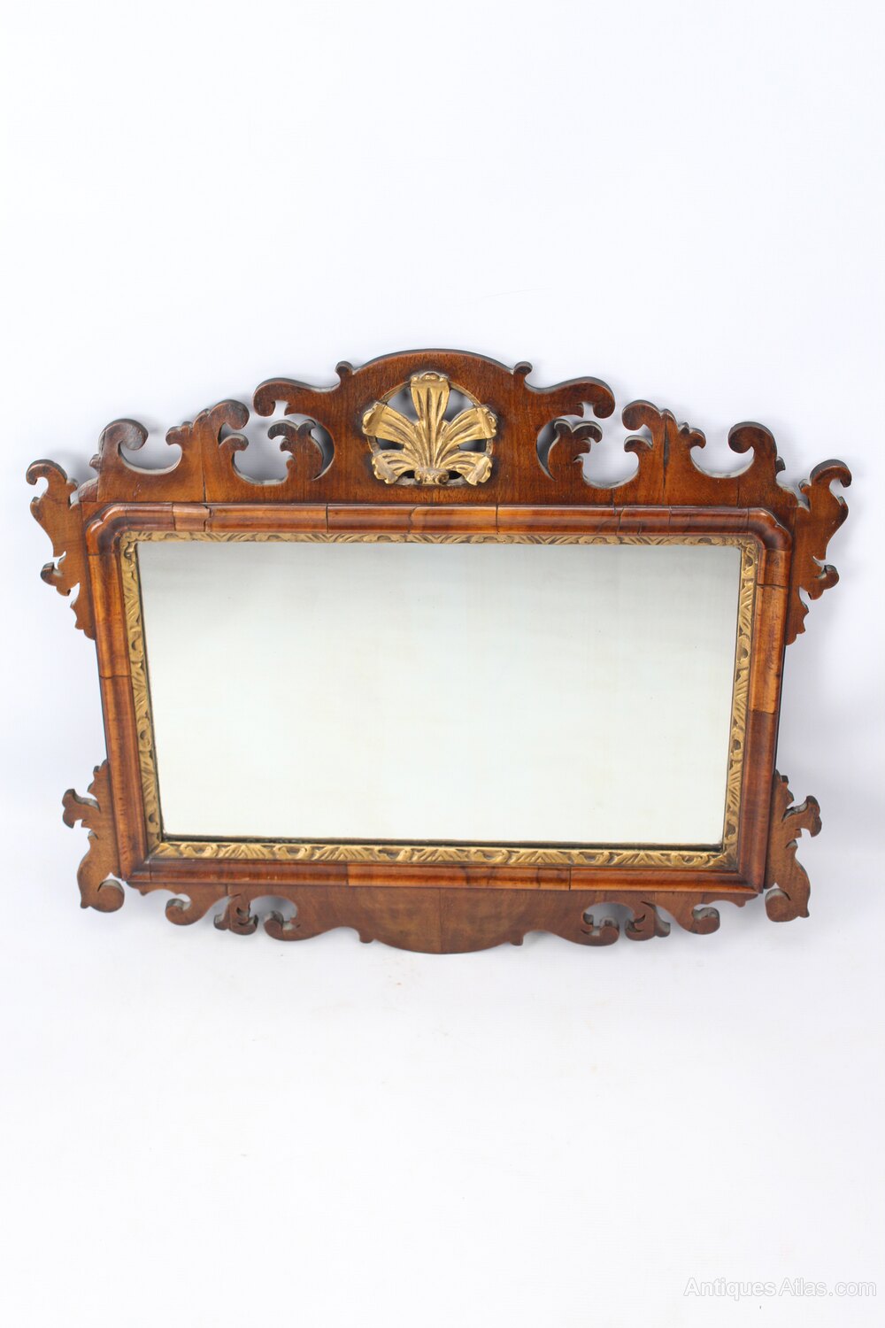George II Walnut Chippendale Fretwork Wall Mirror