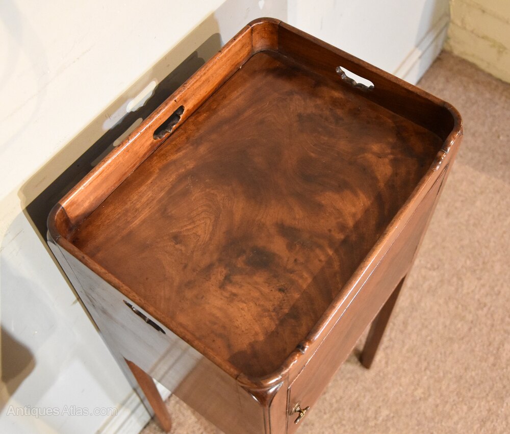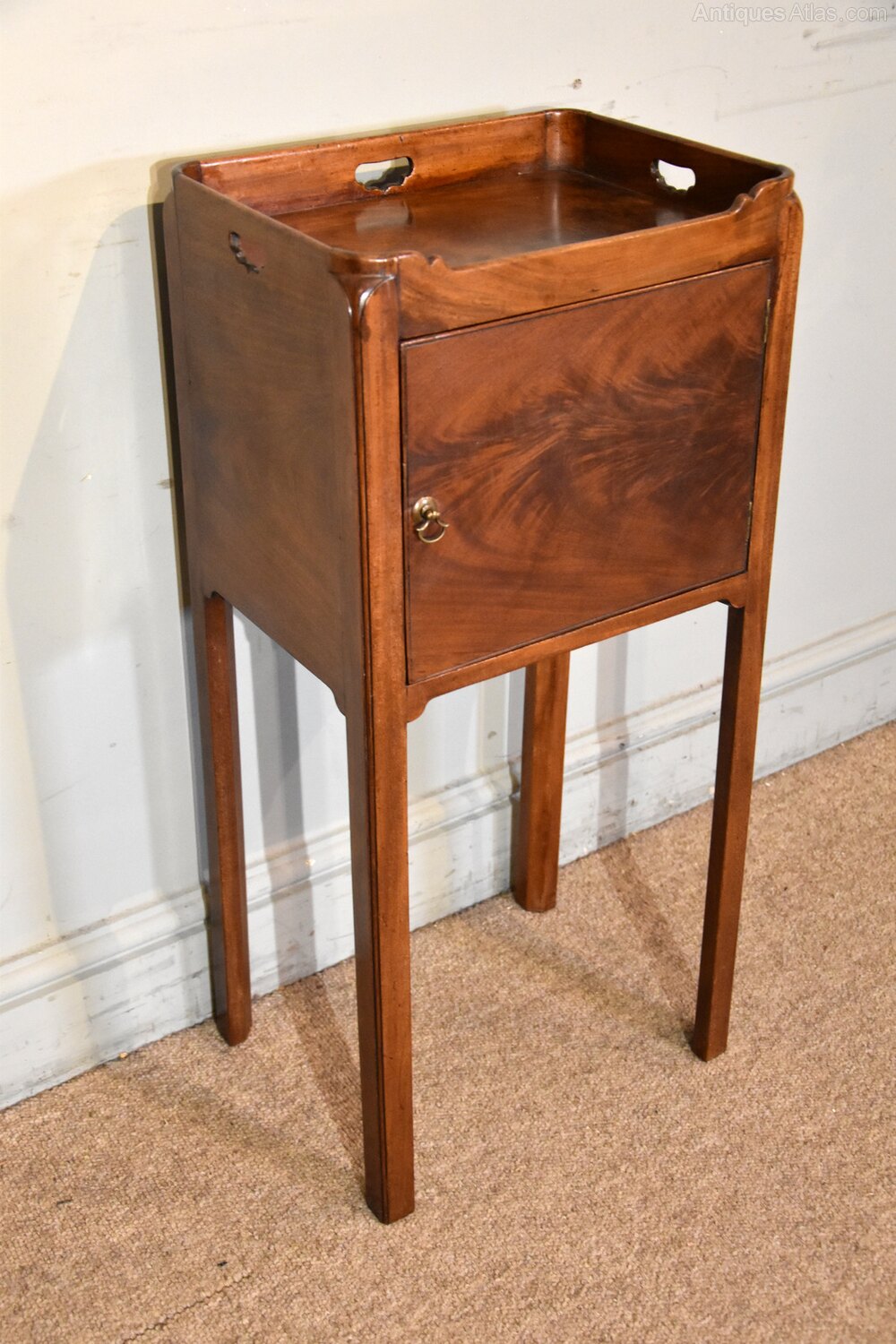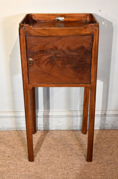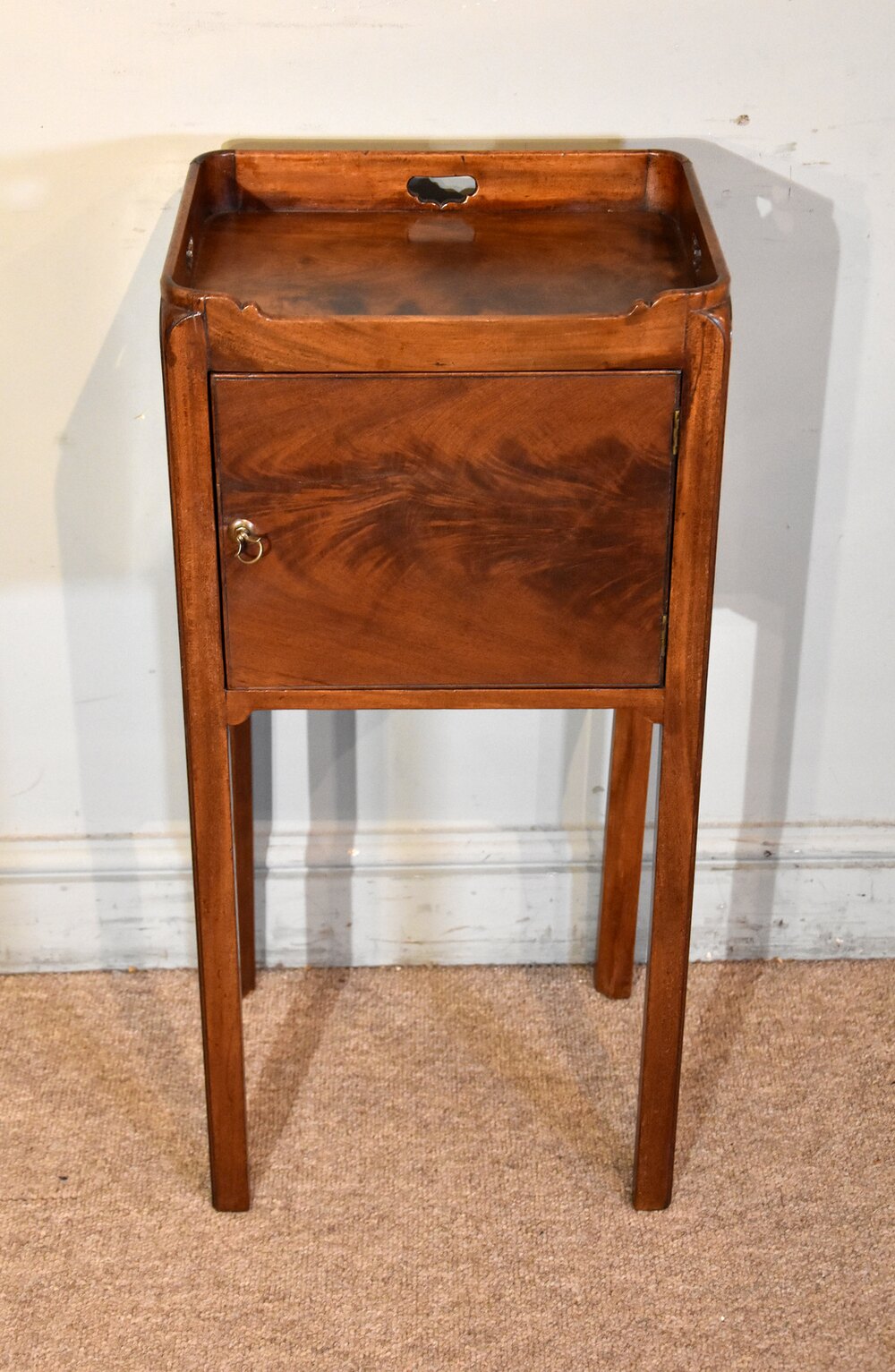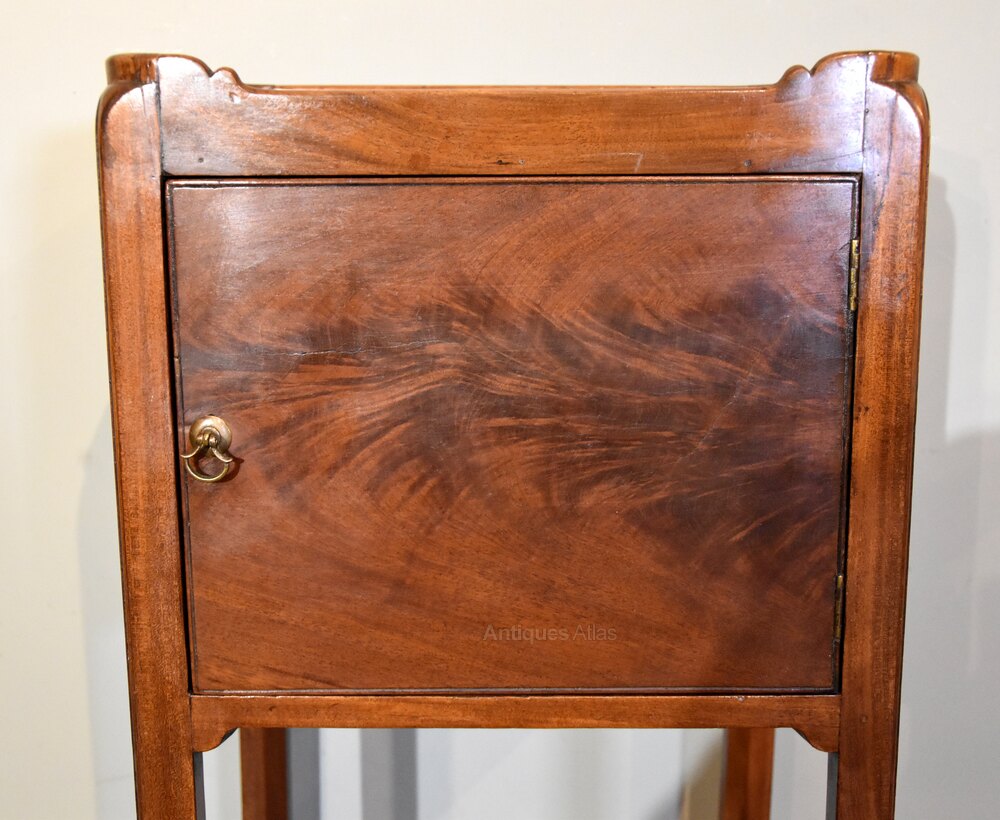 A George III mahogany Chippendale period bedside cupboard of small size. finely figured on camphored legs.