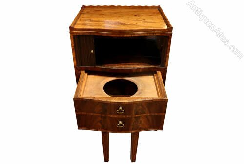 A very good example of a Georgian bedside commode, displaying excellent craftsmanship and a sophisticated profile typical of high-quality cabinet work from the late 18th century.