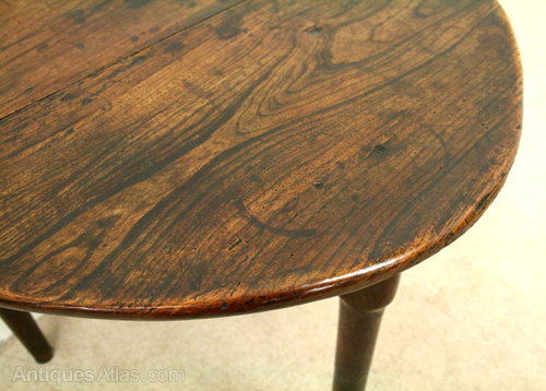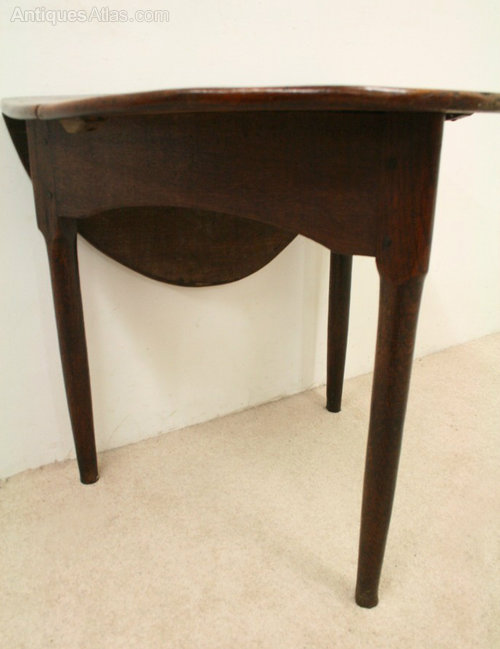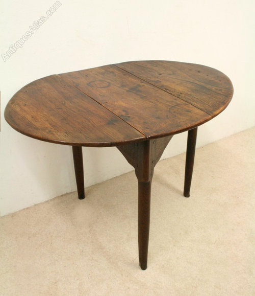 Circa 1760, George III oak cricket style table with a drop leaf flap to one side, standing on reduced legs. Wonderful colour and patina – a nice Cottage piece.