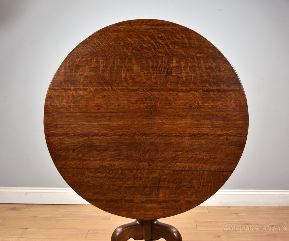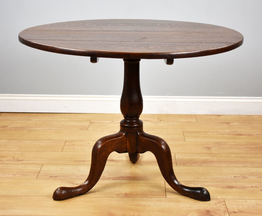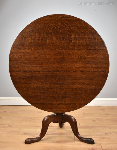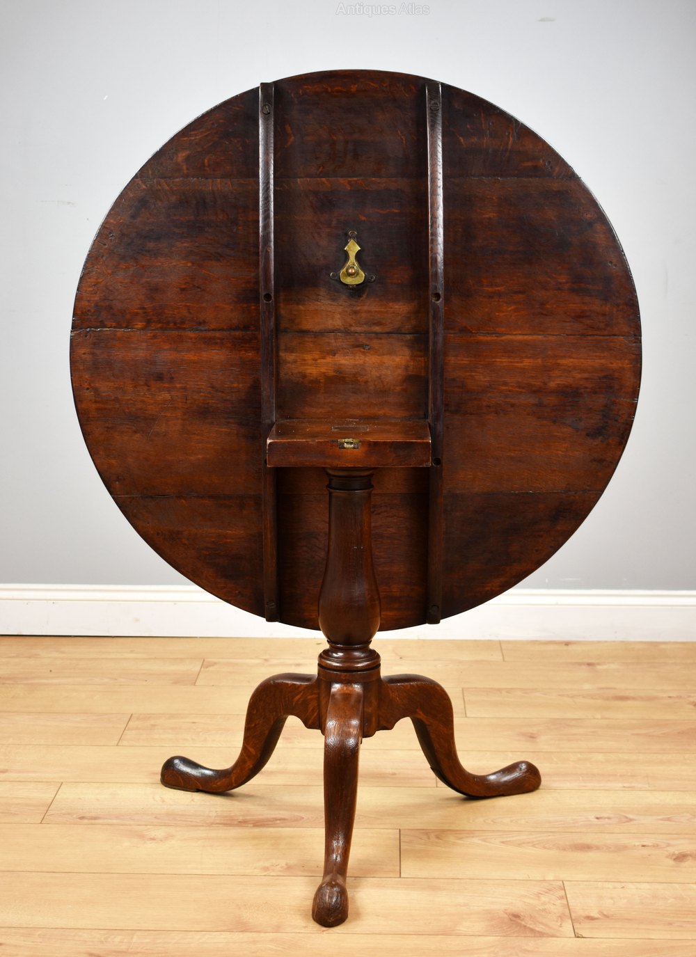 For sale is a George III oak snap top table, having a circular top above a turned stem standing on elegant legs. The table is in good condition showing minor signs of wear commensurate with age and use.