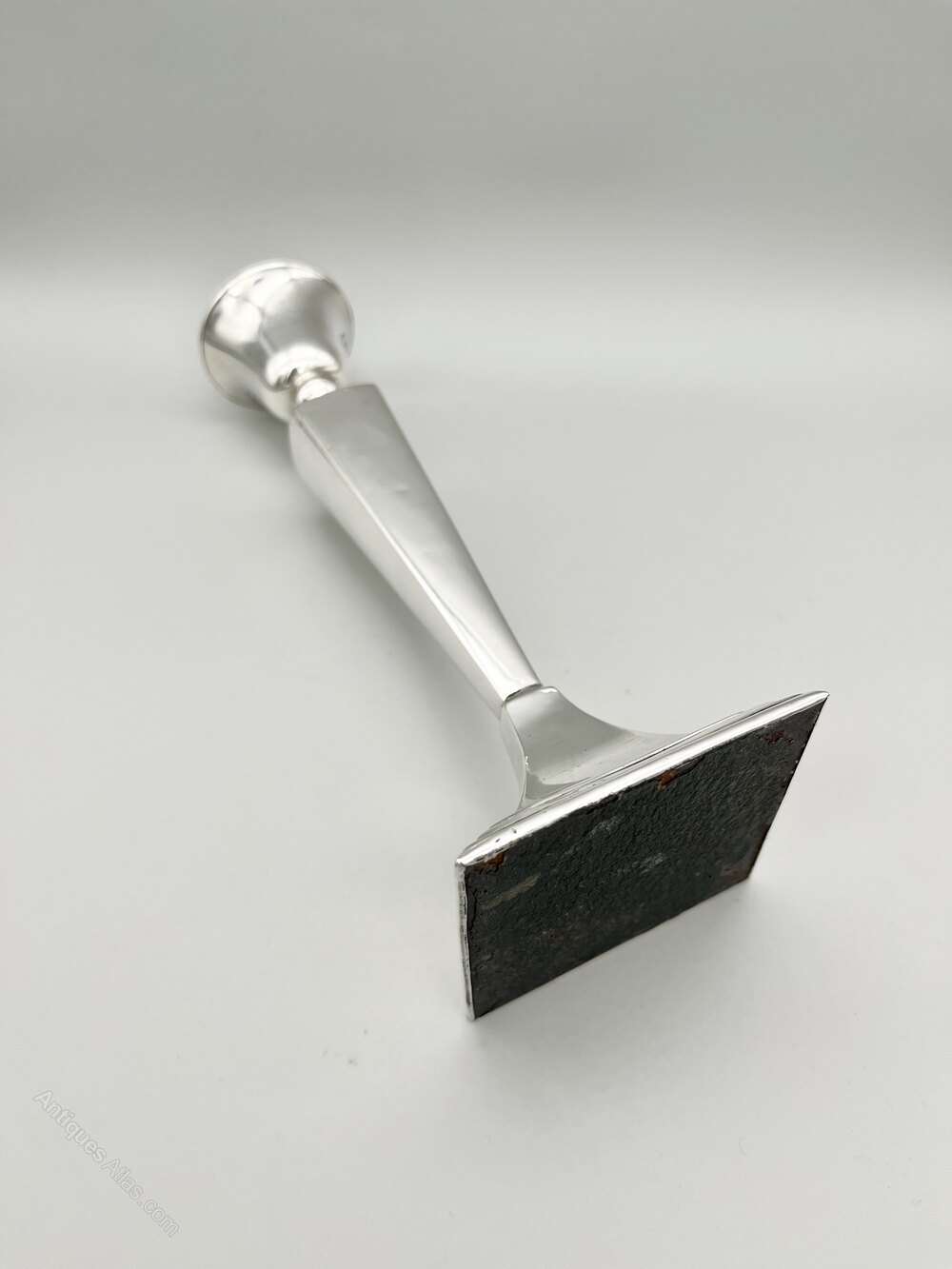 The candlestick was made in Birmingham by the Boots Pure Drug Company and dates to 1913. Founded in Nottingham by John Boot in 1849, Boots The Chemist is now one of the UK's largest and most successful retailers. Between around 1900 and 1925, Boots produced and stocked a wide range of good quality household & personal silverware, primarily, though not exclusively, aimed at female customers. These attractive items have now become popular with collectors.