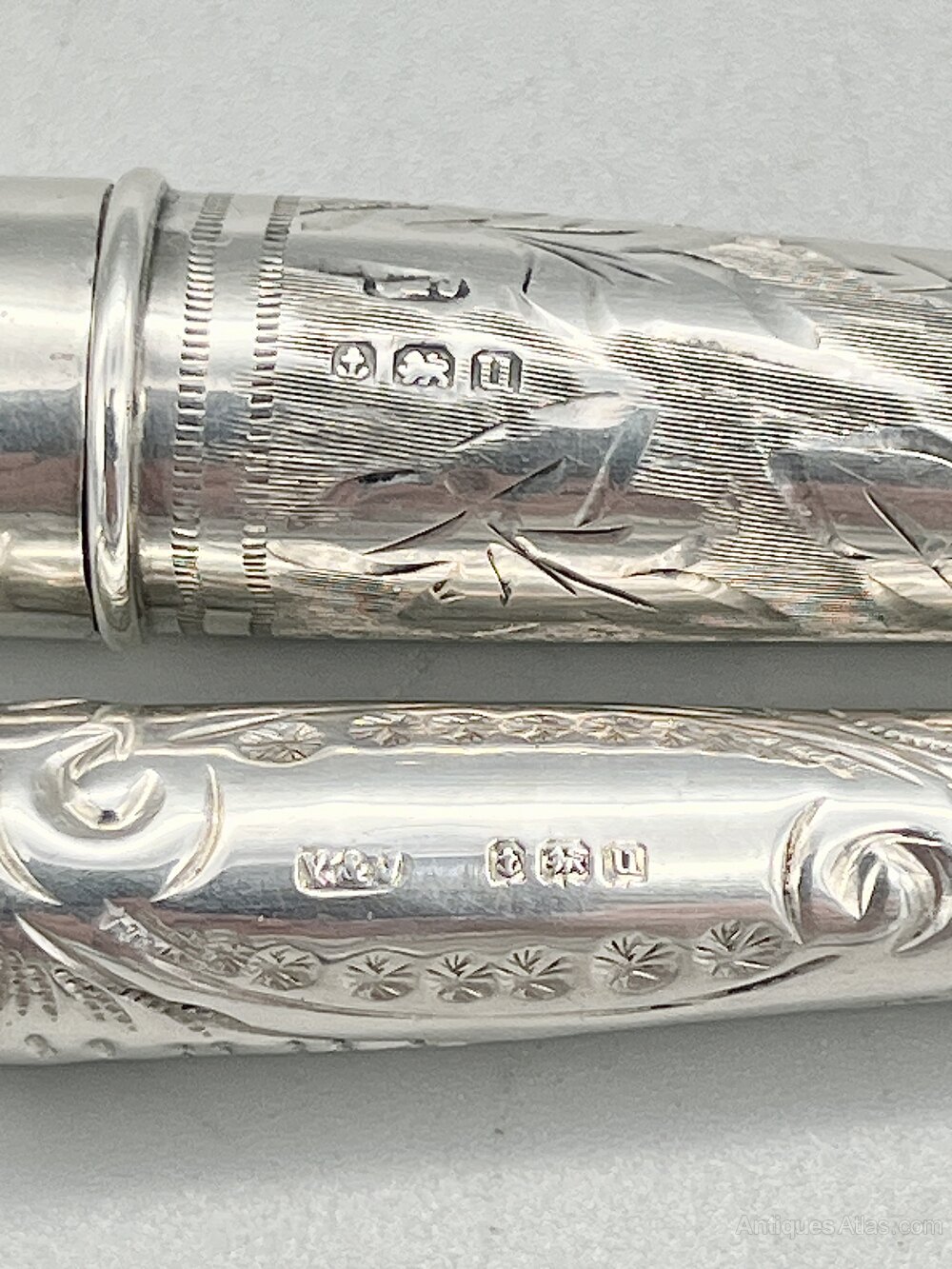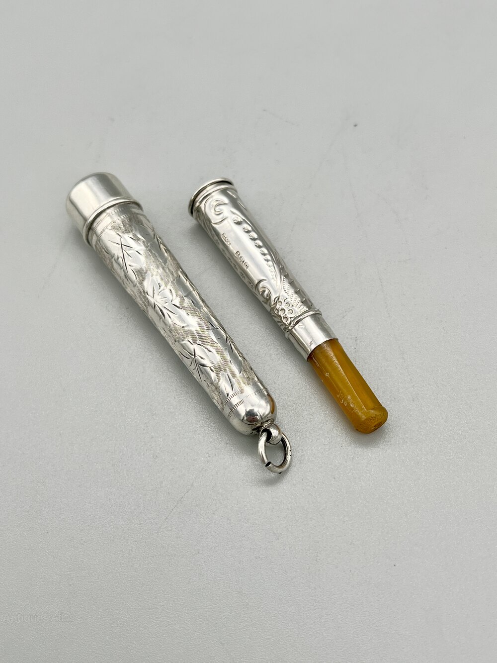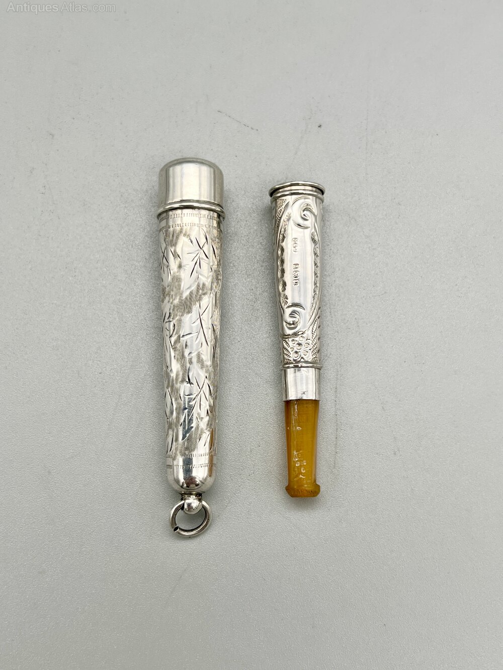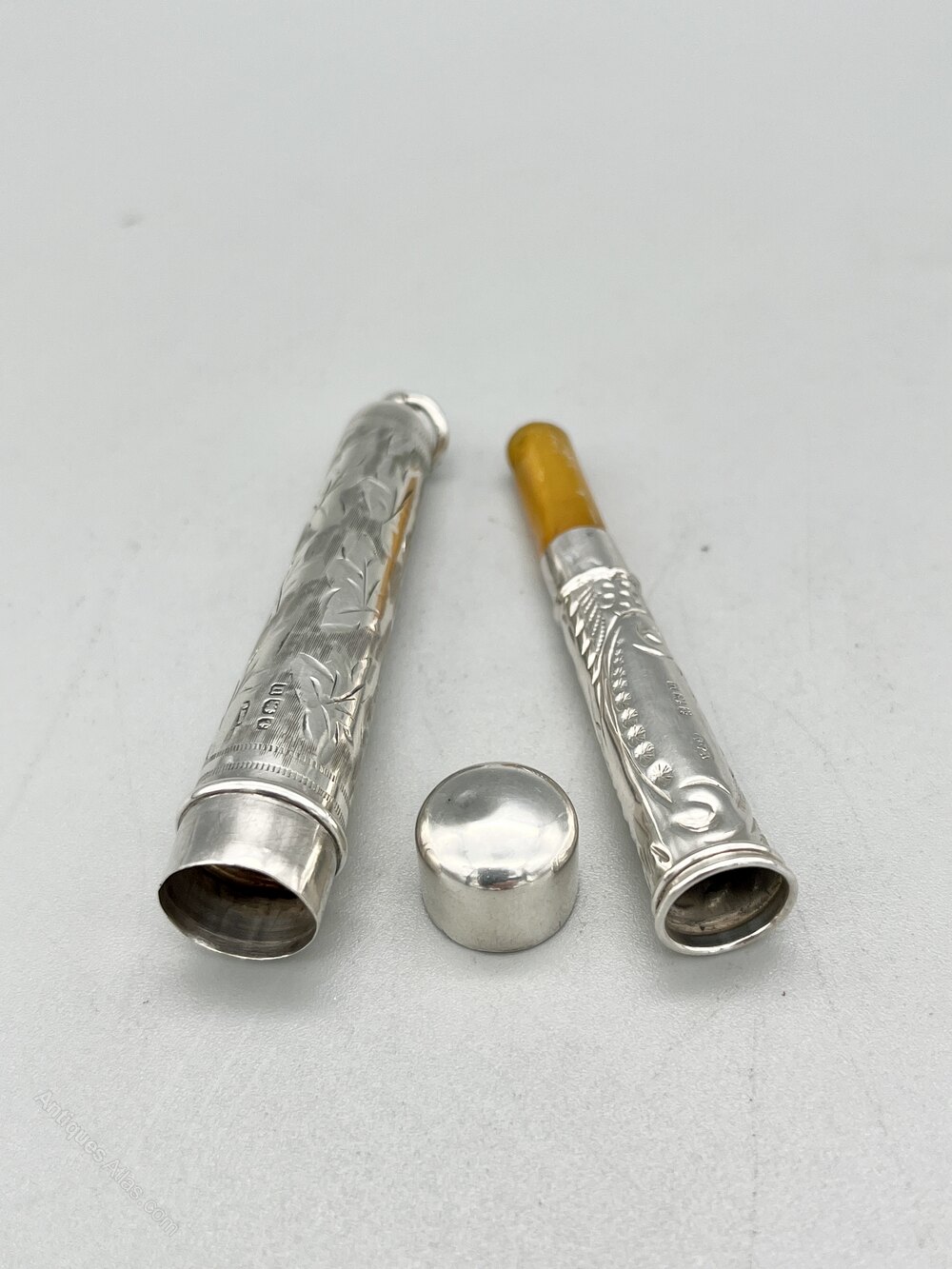 The holder and case were made in Birmingham by Villers & Jackson and date to 1919. Villers & Jackson registered their mark at the Birmingham assay office in 1890 with later marks being registered in Chester and Sheffield. They were based in the Jewellery Quarter and primarily made smoking accessories, fruit knives and pens and pencils. The company remained in business until the start of WW2.