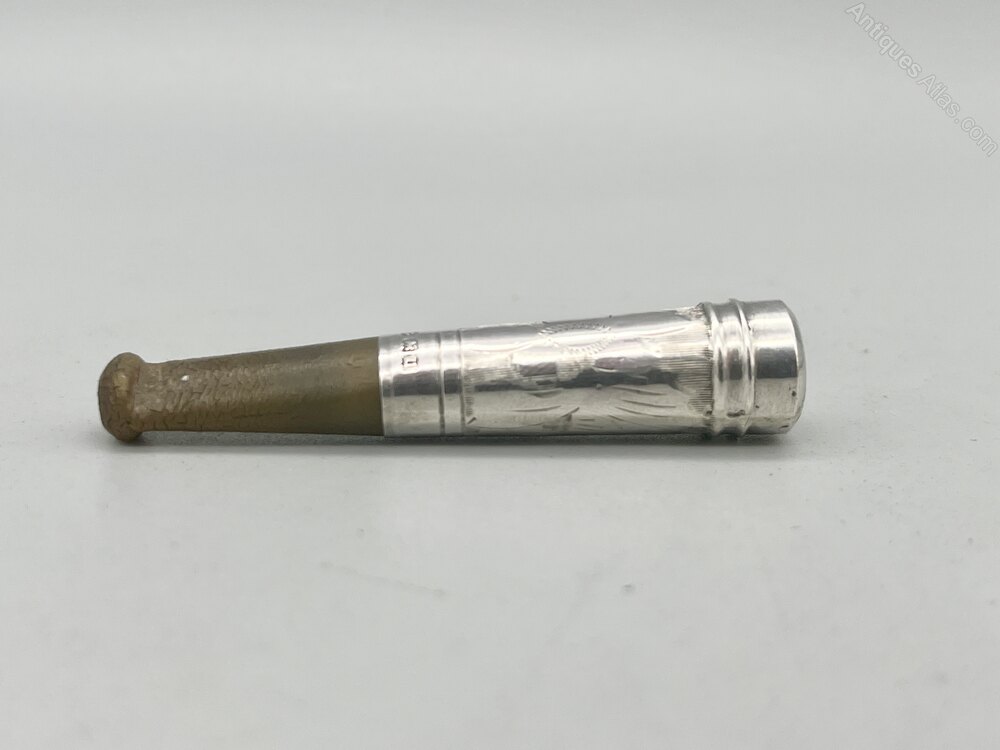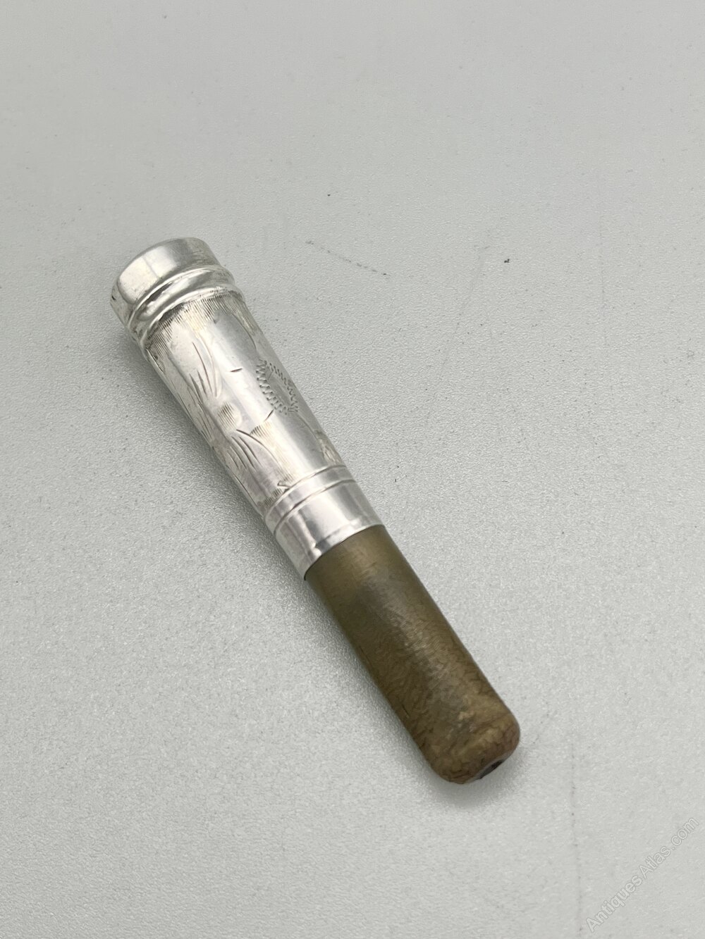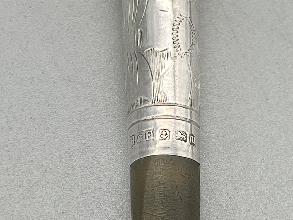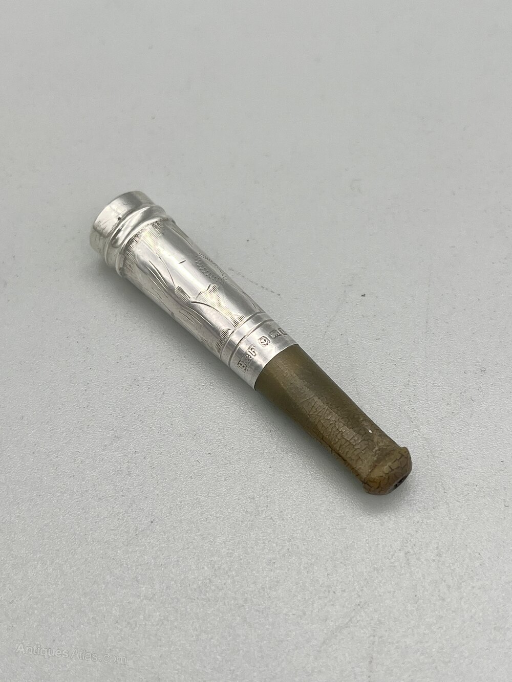 The cigarette holder was made in Birmingham for Hall & Fitzgerald and dates to 1919. The company was founded in the 1870s by William Hall and Edward Davies in Bristol. Fitzgerald was presumably a replacement for Davies at some point. They were wholesalers of pipes and smoking accessories and registered silver marks in London, Birmingham and Chester, with Birmingham being the one most commonly seen. The firm ceased trading in 1982.