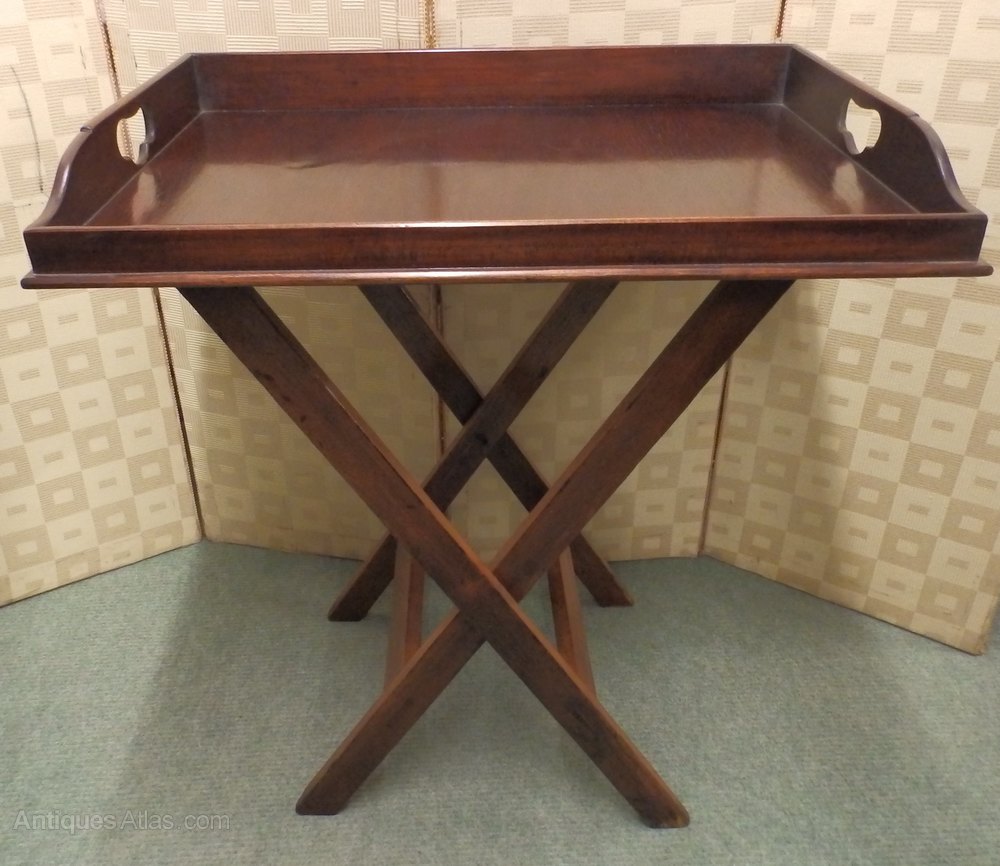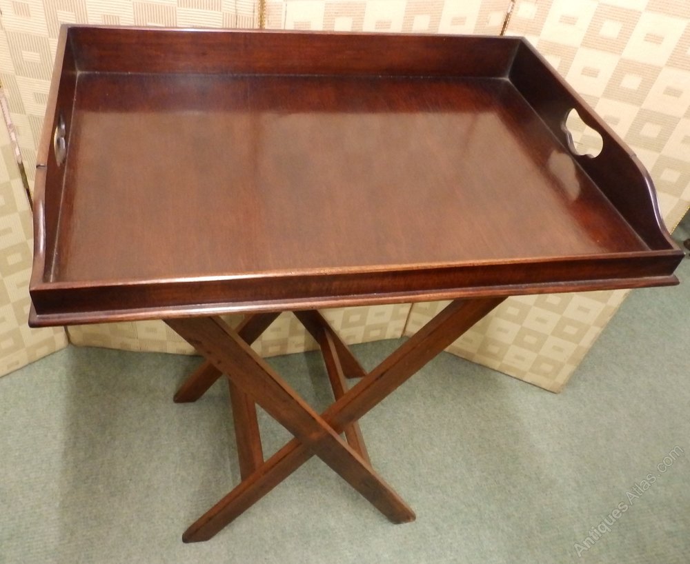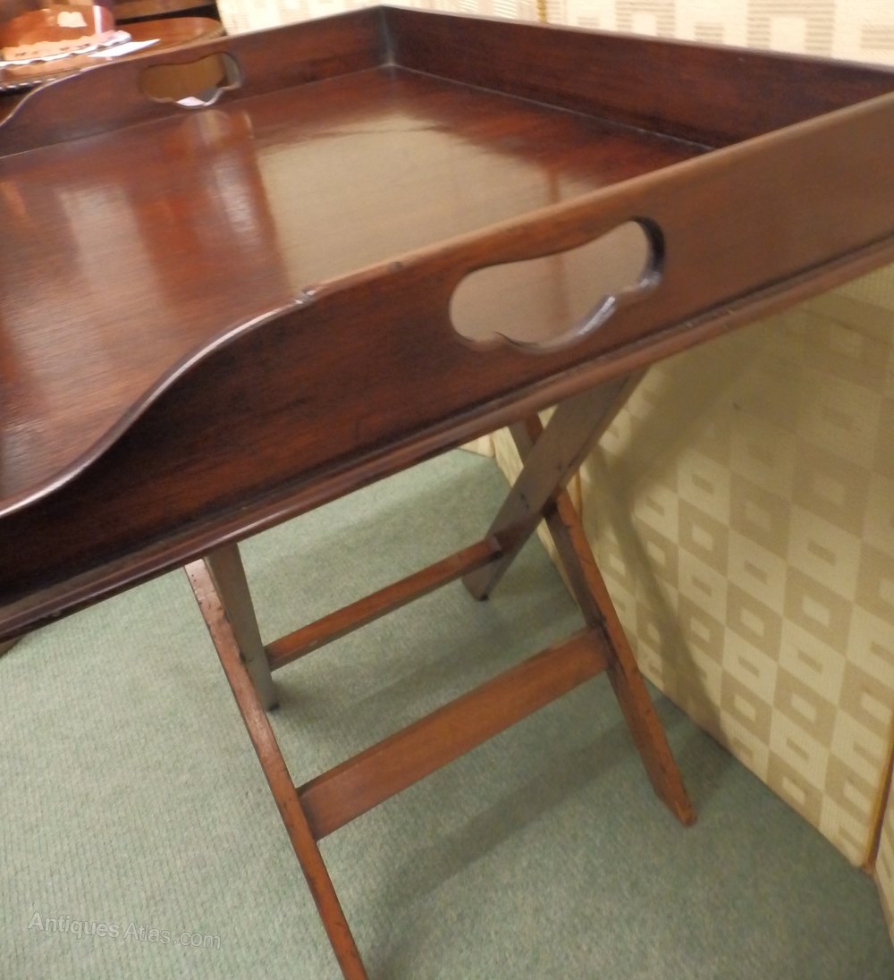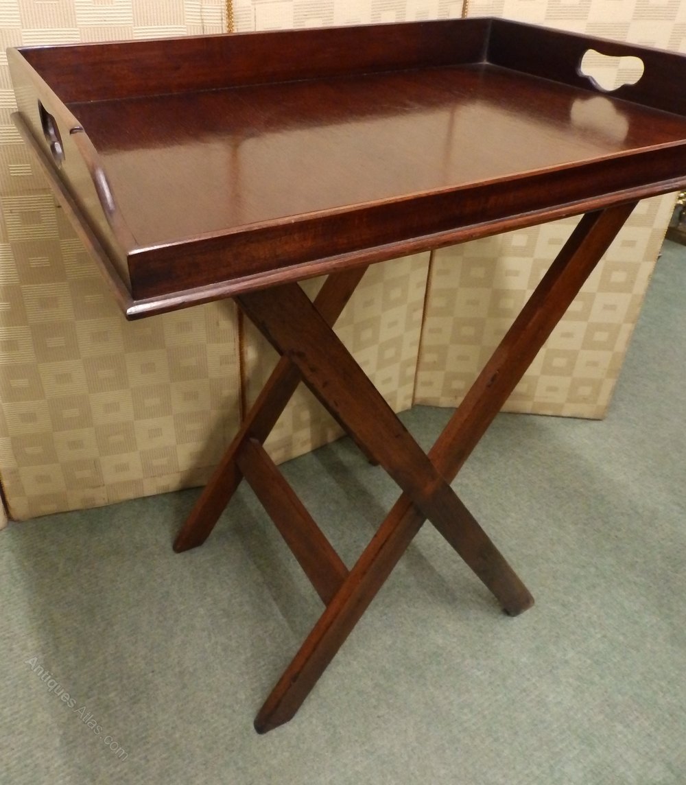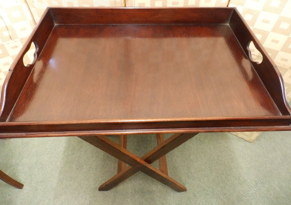 NO-596-Georgian mahogany folding butlers tray on possible Victorian base in very good condition
