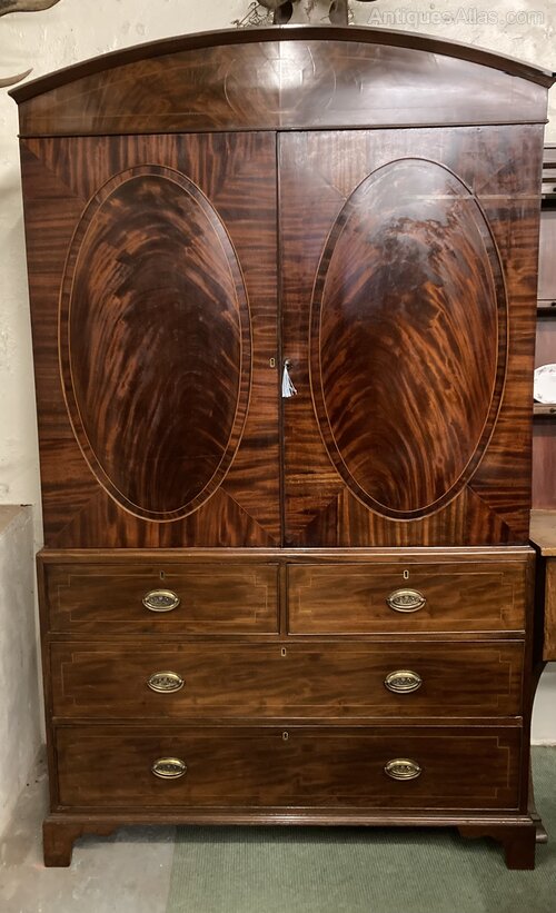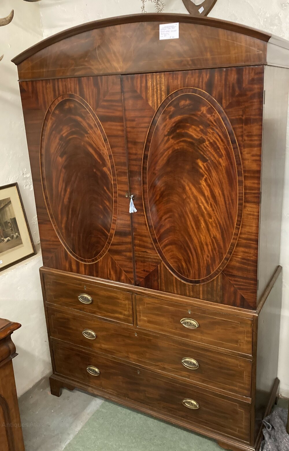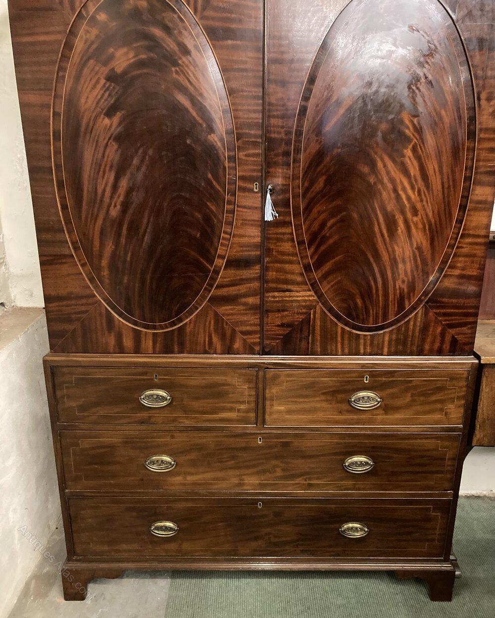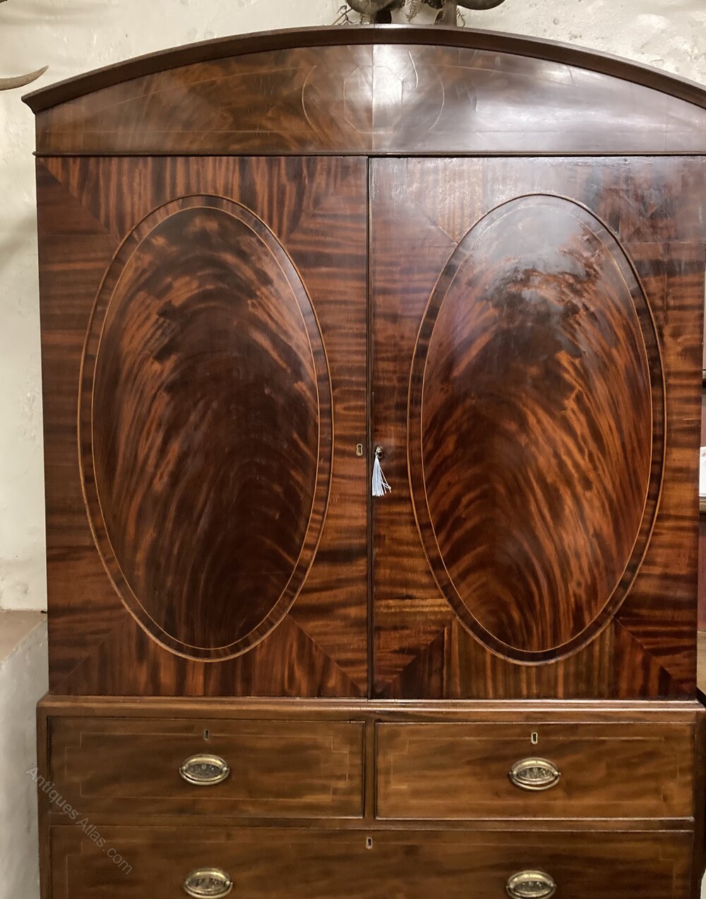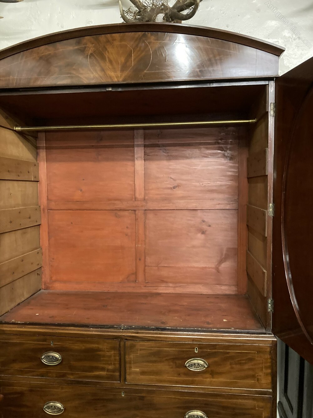 no-118-Georgian mahogany Linen Press (has no butler slides) has hanging rail in good condition
