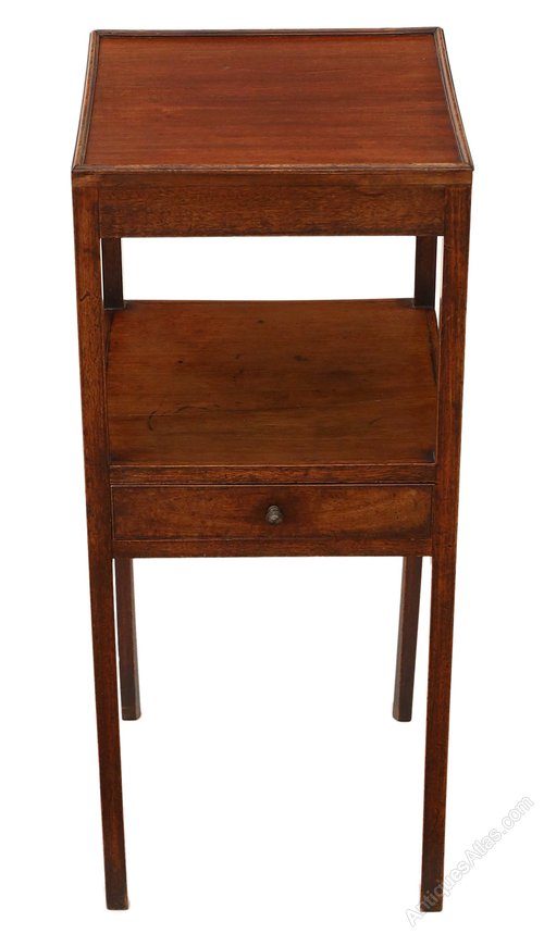 Historic knocks, marks, cracks, scratches, wear, imperfections, repairs and alterations, as is always the way and to be expected with genuine antique furniture. Later top to cover bowl and cup cut-outs (as is normal). There are remnants of an old blue paper lining in the drawer. There are some extinct historic woodworm holes, that have been treated for good measure and an historic crack in the top of the undertier.