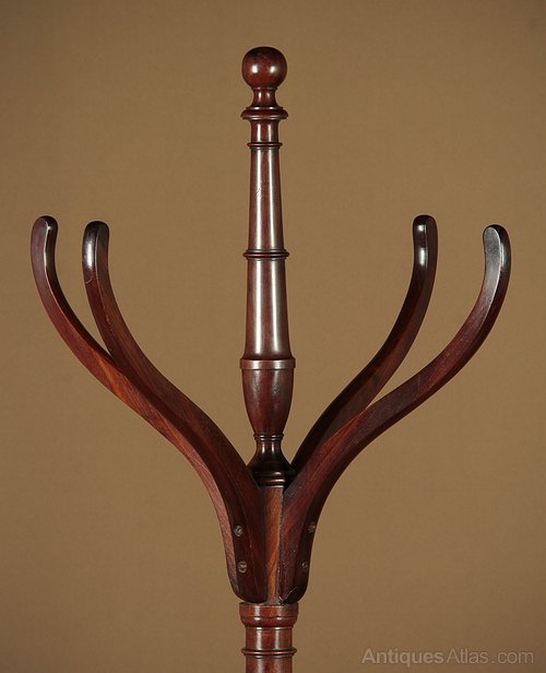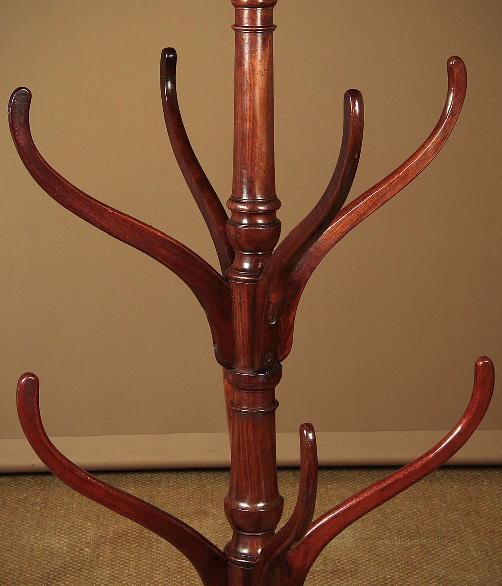 Fine example of the classic Georgian hat stand c.1790. In solid mahogany throughout with 12 curving branches arranged around a crisply turned column with a ball finial at the top. On four swept feet with original brass feet and castors. Excellent colour and condition, cleaned and waxed in our workshops.