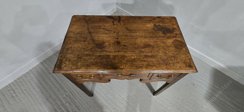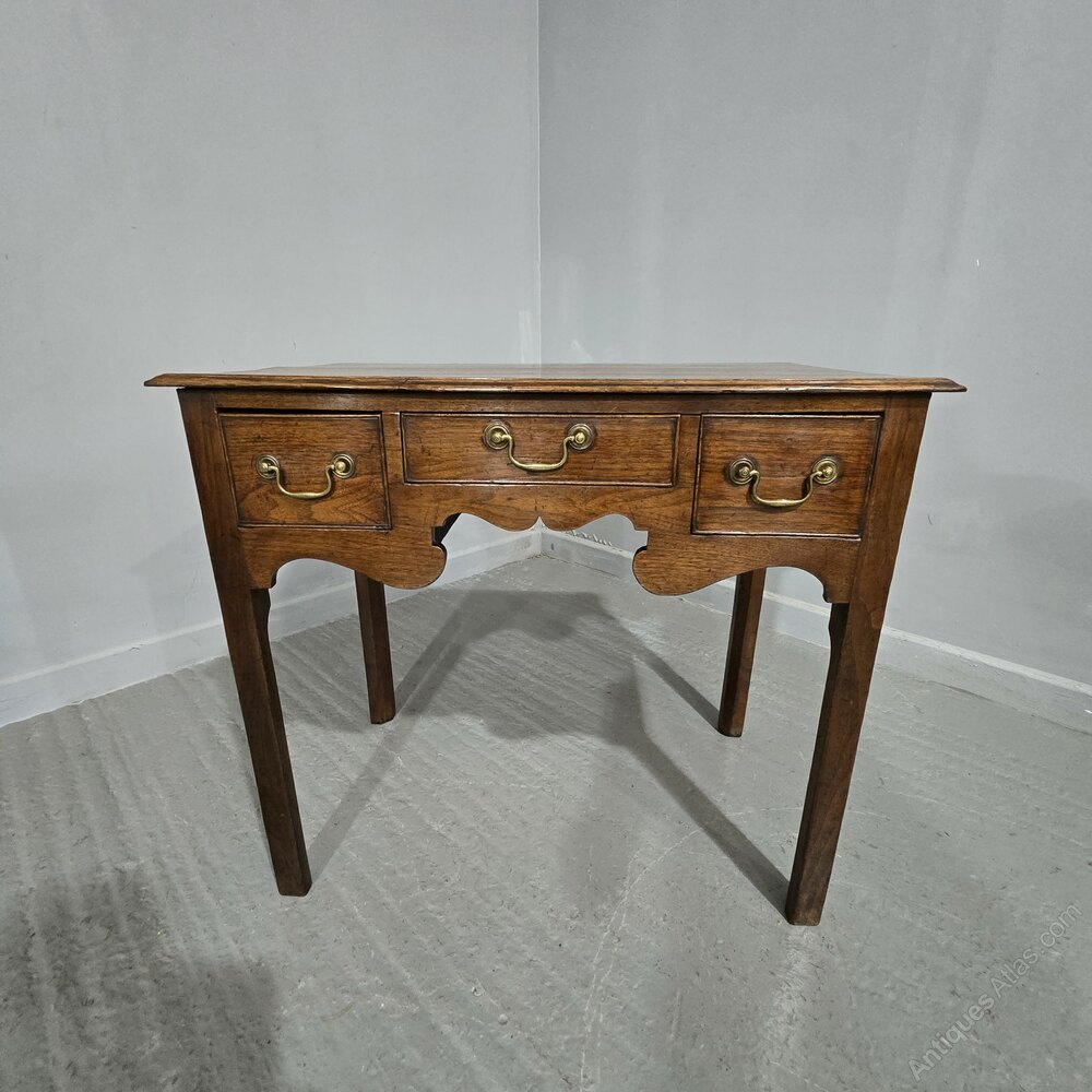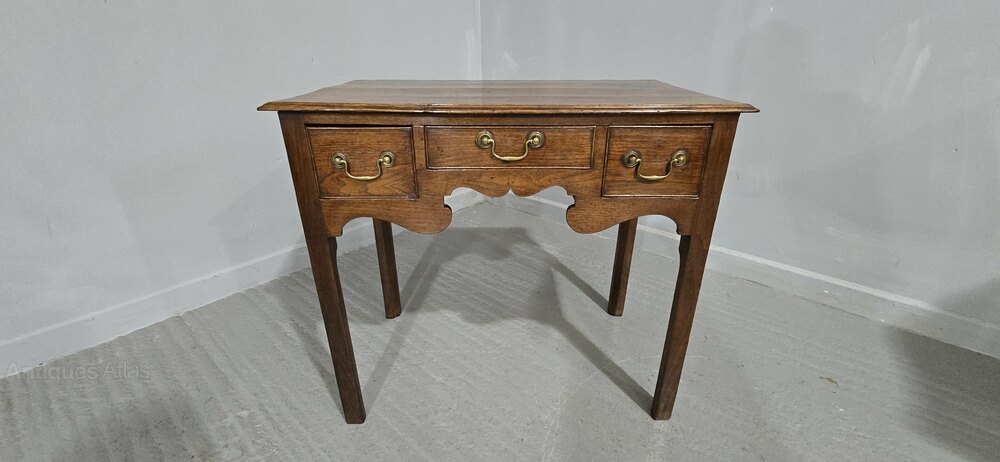 A very good Georgian oak three drawer lowboy, with original brass swan necked handles, and in original overall very good condition.